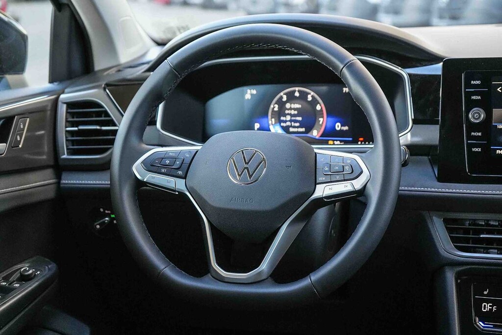 Taos 1.5T SE Black, 4D Sport Utility, 1.5L I4 Turbocharged DOHC 16V LEV3-SULEV30 174hp, 8-Speed Automatic with Tiptronic, Moss Green, Black Cloudtex Cloth, 6 Speakers, 8-Way Power Driver and Passenger Seat, Active Blind Spot Monitor, Brake assist, Electronic Stability Control, Exterior Parking Camera Rear, and Spoiler