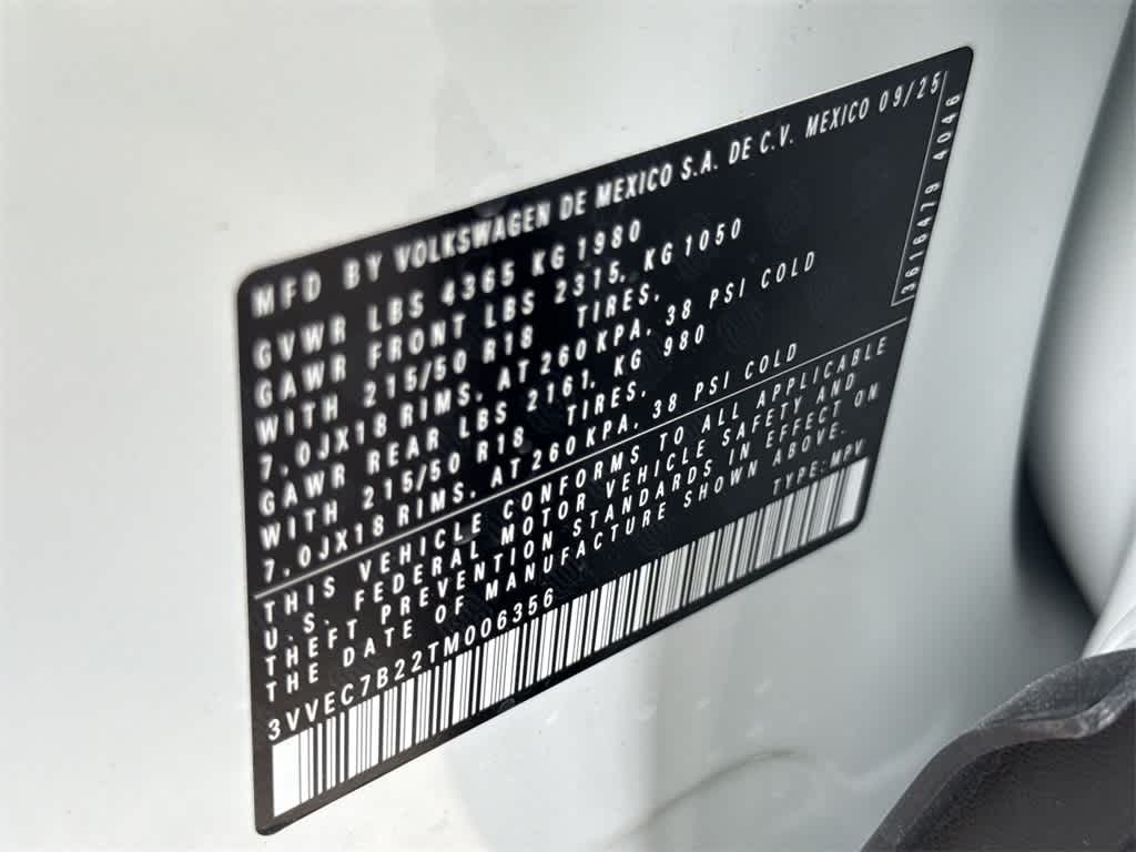 Taos 1.5T SE is nicely equipped with 4-Wheel Disc Brakes, 6 Speakers, ABS brakes, Active Blind Spot Monitor, Air Conditioning, Alloy wheels, AM/FM radio: SiriusXM with 360L, Auto High-beam Headlights, Automatic temperature control, Brake assist, Bumpers: body-color, Cloudtex and Cloth Seating Surfaces, Compass, Delay-off headlights, Driver door bin, Driver vanity mirror, Dual front impact airbags, Dual front side impact airbags, Electronic Stability Control, Emergency communication system: VW Car-Net Safe & Secure 5-year, Exterior Parking Camera Rear, Front anti-roll bar, Front Bucket Seats, Front Center Armrest, Front dual zone A/C, Front reading lights, Front Strut Rear Torsion Beam Suspension, Front wheel independent suspension, Fully automatic headlights, Heated door mirrors, Heated Front Bucket Seats, Heated front seats, Heated steering wheel, Illuminated entry, Leather Shift Knob, Low tire pressure warning, Occupant sensing airbag, Outside temperature display, Overhead airbag, Overhead console, Panic alarm, Passenger door bin, Passenger vanity mirror, Power door mirrors, Power driver seat, Power steering, Power windows, Radio data system, Radio: MIB3 Composition Media AM/FM/HD, Rain sensing wipers, Rear anti-roll bar, Rear seat center armrest, Rear window defroster, Rear window wiper, Remote keyless entry, Security system, Speed control, Speed-sensing steering, Split folding rear seat, Spoiler, Steering wheel mounted audio controls, Tachometer, Telescoping steering wheel, Tilt steering wheel, Traction control, Trip computer, Variably intermittent wipers, and Wheels: 18 2-Tone Machined Alloy. Price includes: $500 - Customer Bonus. Exp. 03/02/2026