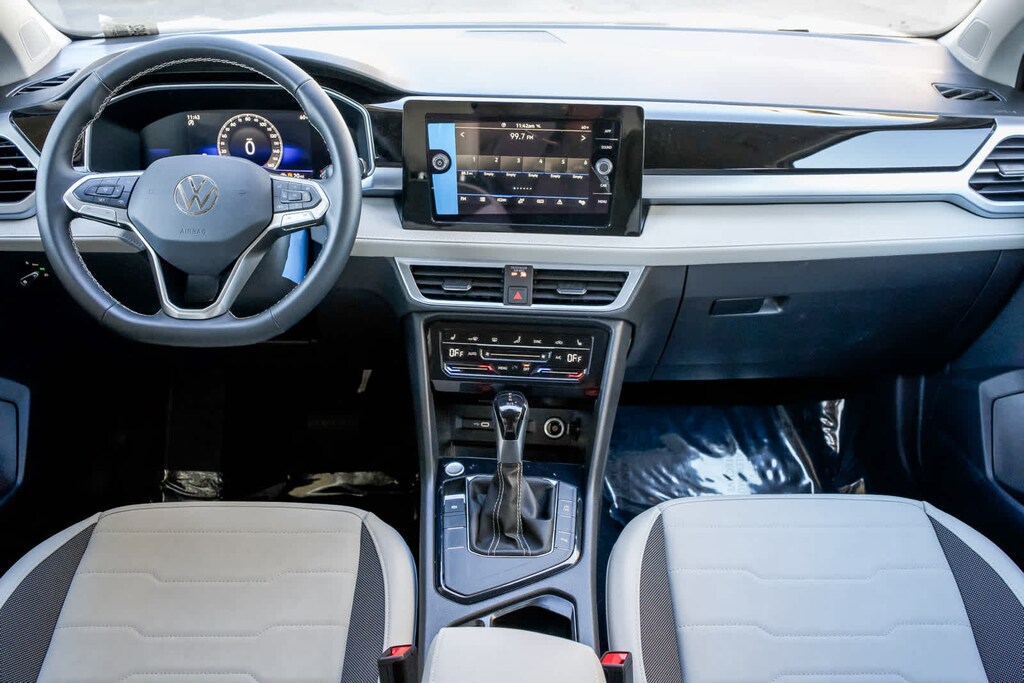 Taos 1.5T SE, 4D Sport Utility, 1.5L I4 Turbocharged DOHC 16V LEV3-SULEV30 174hp, 8-Speed Automatic with Tiptronic, FWD, Pure White, Gray Cloth, 6 Speakers, 8-Way Power Driver and Passenger Seat, Brake assist, Electronic Stability Control, Exterior Parking Camera Rear, Front dual zone A/C, Radio: MIB3 Composition Media AM/FM/HD, Remote keyless entry with push button start, Spoiler, VW Care w/30,000 mile service, and Wheels: 18 2-Tone Machined Alloy
