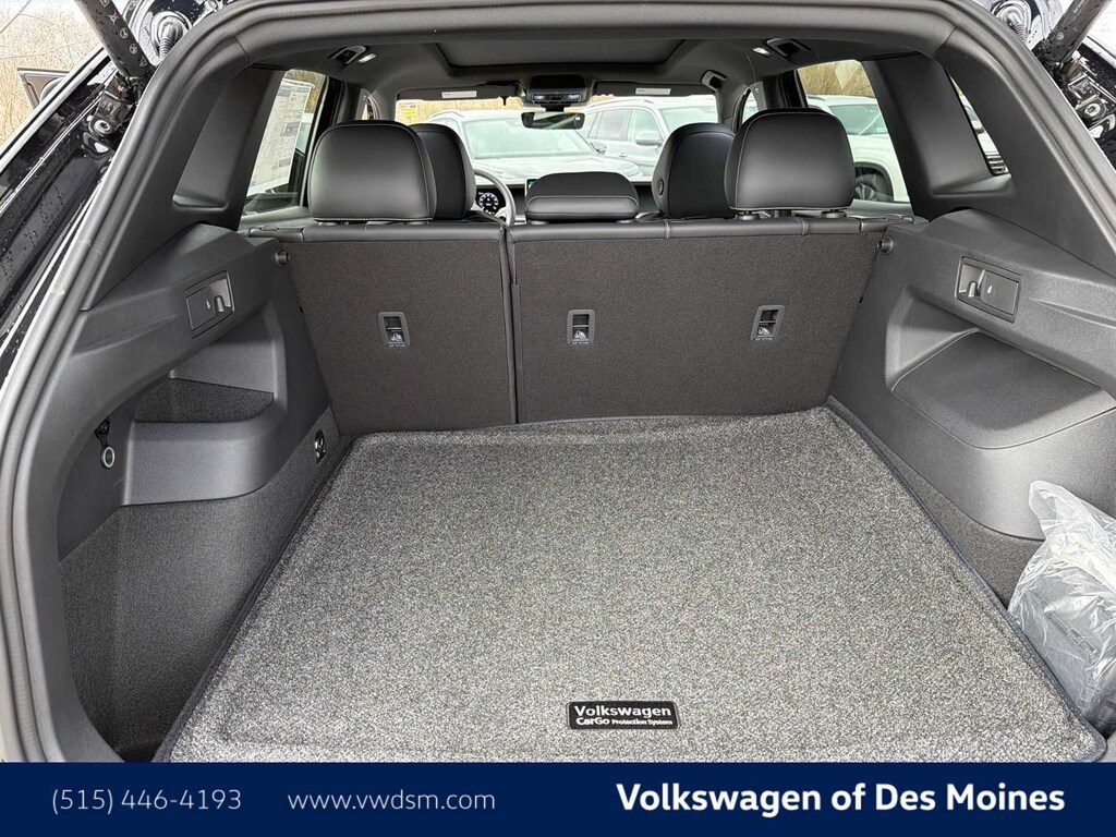 Tiguan 2.0T SE R-Line Black is nicely equipped with AWD, 4-Wheel Disc Brakes, 4-Wheel Independent Suspension, 7 Speakers, ABS brakes, Air Conditioning, Alloy wheels, AM/FM radio: SiriusXM with 360L, Auto High-beam Headlights, Auto-dimming Rear-View mirror, Automatic temperature control, Brake assist, Bumpers: body-color, Compass, Delay-off headlights, Driver door bin, Driver vanity mirror, Dual front impact airbags, Dual front side impact airbags, Electronic Stability Control, Emergency communication system, Exterior Parking Camera Rear, Four wheel independent suspension, Front anti-roll bar, Front Bucket Seats, Front Center Armrest, Front dual zone A/C, Front reading lights, Fully automatic headlights, Heads-Up Display, Heated door mirrors, Heated Front Seats, Heated front seats, Illuminated entry, Knee airbag, Leather Shift Knob, Leather steering wheel, Low tire pressure warning, Occupant sensing airbag, Outside temperature display, Overhead airbag, Overhead console, Panic alarm, Passenger door bin, Passenger vanity mirror, Perforated V-Tex Leatherette Seating Surfaces, Power door mirrors, Power driver seat, Power Liftgate, Power moonroof: Panoramic, Power steering, Power windows, Radio data system, Radio: MIB4 Composition Media Touchscreen with AM/FM, Rain sensing wipers, Rear anti-roll bar, Rear reading lights, Rear seat center armrest, Rear side impact airbag, Rear window defroster, Rear window wiper, Remote keyless entry, Security system, Speed control, Speed-sensing steering, Split folding rear seat, Spoiler, Sport steering wheel, Steering wheel mounted audio controls, Tachometer, Telescoping steering wheel, Tilt steering wheel, Traction control, Trip computer, Turn signal indicator mirrors, Variably intermittent wipers, and Wheels: 20 Black Painted Alloy. Price includes: $1000 - Customer Bonus. Exp. 03/02/2026
