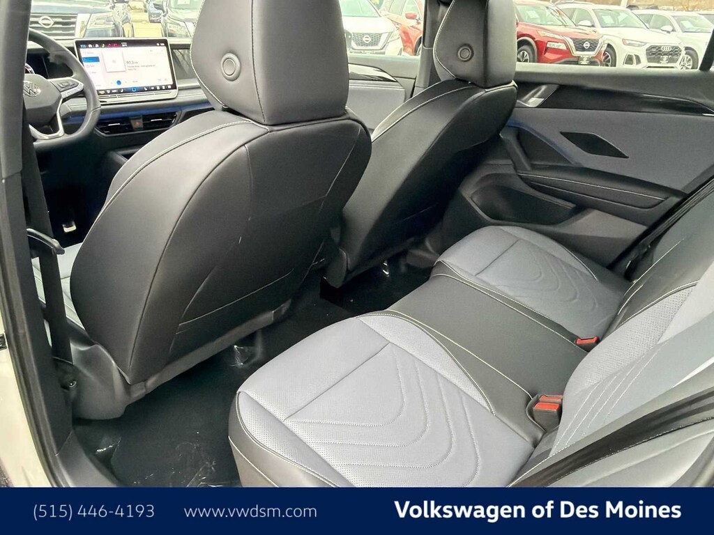 The interior of the Tiguan is a true sanctuary, with Heated Front Seats, a Leather-Wrapped Steering Wheel, and a Leather Shift Knob providing unparalleled comfort and style. The Panoramic Power Moonroof floods the cabin with natural light, creating a spacious and airy atmosphere.
