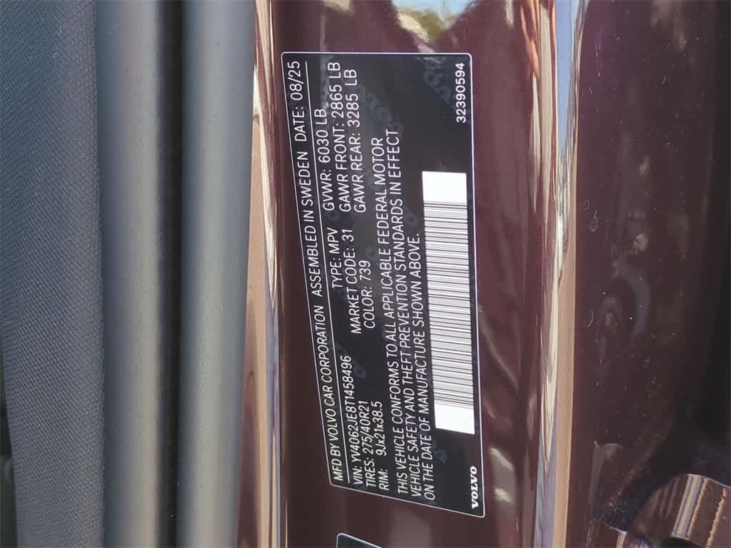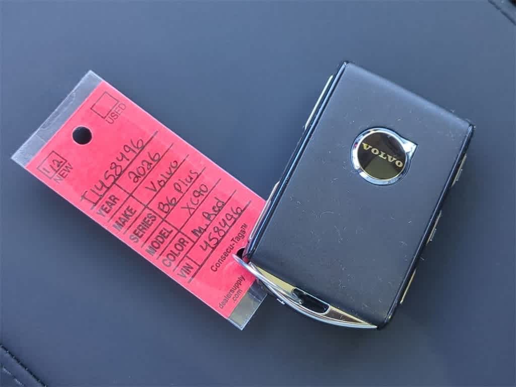 AWD, Charcoal w/Nordico Upholstery, 10 Speakers, 3rd row seats: bucket, 4-Wheel Disc Brakes, ABS brakes, Air Conditioning, Alloy wheels, AM/FM radio: SiriusXM, Anti-whiplash front head restraints, Apple CarPlay, Auto High-beam Headlights, Auto-dimming door mirrors, Auto-dimming Rear-View mirror, Automatic temperature control, Brake assist, Bumpers: body-color, Delay-off headlights, Driver door bin, Driver vanity mirror, Dual front impact airbags, Dual front side impact airbags, Electronic Stability Control, Emergency communication system: Volvo Cars App w/4 Year Subscription, Exterior Parking Camera Rear, Four wheel independent suspension, Front anti-roll bar, Front Bucket Seats, Front Center Armrest w/Storage, Front dual zone A/C, Front reading lights, Fully automatic headlights, Garage door transmitter: HomeLink, Genuine wood dashboard insert, Genuine wood door panel insert, Headlight cleaning, Heated door mirrors, Heated Front Bucket Seats, Heated front seats, Heated rear seats, Heated steering wheel, Illuminated entry, Knee airbag, Low tire pressure warning, Memory seat, Navigation System, Nordico Upholstery, Occupant sensing airbag, Outside temperature display, Overhead airbag, Panic alarm, Passenger door bin, Passenger vanity mirror, Power door mirrors, Power driver seat, Power Liftgate, Power moonroof, Power passenger seat, Power steering, Power windows, Radio data system, Radio: High Performance Audio System, Rain sensing wipers, Rear air conditioning, Rear anti-roll bar, Rear dual zone A/C, Rear fog lights, Rear reading lights, Rear window defroster, Rear window wiper, Remote keyless entry, Security system, Speed control, Speed-sensing steering, Split folding rear seat, Spoiler, Steering wheel mounted audio controls, Tachometer, Telescoping steering wheel, Traction control, Trip computer, Turn signal indicator mirrors, Variably intermittent wipers, and Wheels: 21 5-Multi Spoke Black Diamond Cut Alloy Bluetooth Backup Camera Price does not include licensing costs, registration fees, taxes and dealer doc fee of $280, which are to be paid by the consumer. **DEALER INSPECTED**, Remote Start, Bluetooth, Rear Back-up Camera, AWD, Charcoal w/Nordico Upholstery. Mulberry Red Metallic 2026 Volvo XC90 Plus AWD Automatic with Geartronic 2.0L I4 Turbocharged DOHC 16V LEV3-ULEV70