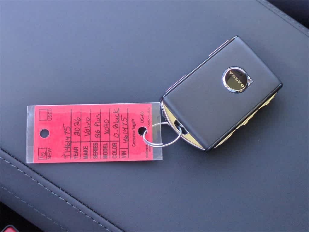 Protection Package (All-Weather Floor Mats, Bumper Cover, Cargo Tray, First Aid Kit, and Wheel Locks), AWD, Charcoal Premium Synthetic, 10 Speakers, 3rd row seats: bucket, 4-Wheel Disc Brakes, ABS brakes, Air Conditioning, Alloy wheels, AM/FM radio: SiriusXM, Anti-whiplash front head restraints, Apple CarPlay, Auto High-beam Headlights, Auto-dimming door mirrors, Auto-dimming Rear-View mirror, Automatic temperature control, Brake assist, Bumpers: body-color, Delay-off headlights, Driver door bin, Driver vanity mirror, Dual front impact airbags, Dual front side impact airbags, Electronic Stability Control, Emergency communication system: Volvo Cars App w/4 Year Subscription, Exterior Parking Camera Rear, Four wheel independent suspension, Front anti-roll bar, Front Bucket Seats, Front Center Armrest w/Storage, Front dual zone A/C, Front reading lights, Fully automatic headlights, Garage door transmitter: HomeLink, Genuine wood dashboard insert, Genuine wood door panel insert, harman/kardon Premium Sound, Headlight cleaning, Heated door mirrors, Heated Front Bucket Seats, Heated front seats, Heated rear seats, Heated steering wheel, Illuminated entry, Integrated rear child seats, Knee airbag, Low tire pressure warning, Memory seat, Navigation System, Nordico Upholstery, Occupant sensing airbag, Outside temperature display, Overhead airbag, Panic alarm, Passenger door bin, Passenger vanity mirror, Power door mirrors, Power driver seat, Power Liftgate, Power moonroof, Power passenger seat, Power steering, Power windows, Radio data system, Radio: High Performance Audio System, Rain sensing wipers, Rear air conditioning, Rear anti-roll bar, Rear dual zone A/C, Rear fog lights, Rear reading lights, Rear seat center armrest, Rear window defroster, Rear window wiper, Remote keyless entry, Security system, Speed control, Speed-sensing steering, Split folding rear seat, Spoiler, Steering wheel mounted audio controls, Tachometer, Telescoping steering wheel, Traction control, Trip computer, Turn signal indicator mirrors, Variably intermittent wipers, and Wheels: 21 5-Multi Spoke Black Diamond Cut Alloy Bluetooth Backup Camera Price does not include licensing costs, registration fees, taxes and dealer doc fee of $280, which are to be paid by the consumer. **DEALER INSPECTED**, Remote Start, Bluetooth, Rear Back-up Camera, AWD, Charcoal Premium Synthetic. Onyx Black Metallic 2026 Volvo XC90 Plus AWD Automatic with Geartronic 2.0L I4 Turbocharged DOHC 16V LEV3-ULEV70