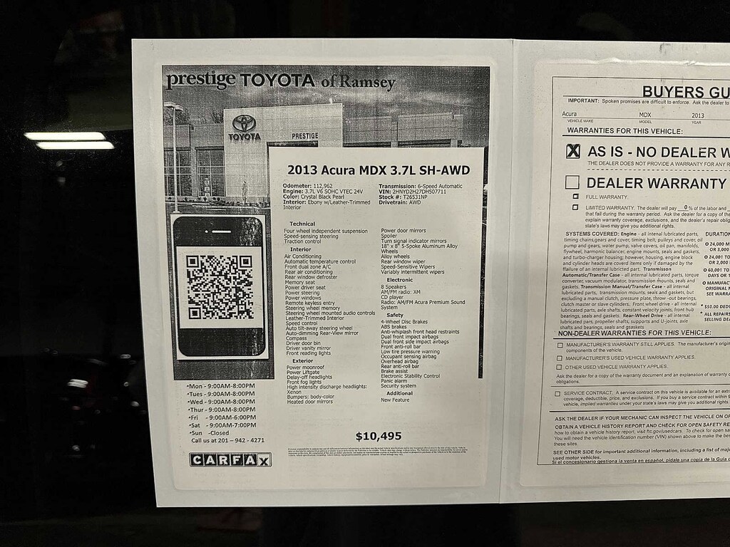 MDX 3.7L SH-AWD, 4D Sport Utility, 3.7L V6 SOHC VTEC 24V, 6-Speed Automatic, AWD, Crystal Black Pearl, Ebony w/Leather-Trimmed Interior. Crystal Black Pearl 2013 Acura MDX 3.7L SH-AWD AWD 6-Speed Automatic 3.7L V6 SOHC VTEC 24V