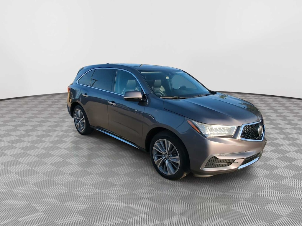 Clean CARFAX. Gray Ebony Leather. This MDX 3.5L is nicely equipped with Ebony Leather, 10 Speakers, 3rd row seats: bench, 4-Wheel Disc Brakes, 4.33 Axle Ratio, ABS brakes, Adaptive suspension, Air Conditioning, Alloy wheels, AM/FM radio: SiriusXM, Anti-whiplash front head restraints, Audio memory, Auto High-beam Headlights, Auto tilt-away steering wheel, Auto-dimming Rear-View mirror, Automatic temperature control, Brake assist, Bumpers: body-color, CD player, Compass, Delay-off headlights, Driver door bin, Driver vanity mirror, Dual front impact airbags, Dual front side impact airbags, Electronic Stability Control, Emergency communication system: AcuraLink, Exterior Parking Camera Rear, Four wheel independent suspension, Front anti-roll bar, Front Bucket Seats, Front Center Armrest, Front dual zone A/C, Front reading lights, Garage door transmitter: HomeLink, Heated door mirrors, Heated front seats, Heated Front Sport Seats, HVAC memory, Illuminated entry, Knee airbag, Lane Departure Warning System, Leather steering wheel, Leather-Trimmed Interior, Low tire pressure warning, Memory seat, Navigation System, Occupant sensing airbag, Outside temperature display, Overhead airbag, Overhead console, Panic alarm, Passenger door bin, Passenger vanity mirror, Power door mirrors, Power driver seat, Power Liftgate, Power moonroof, Power passenger seat, Power steering, Power windows, Premium audio system: Acura/ELS Surround, Radio data system, Radio: Acura/ELS Studio Premium Audio System, Rain sensing wipers, Rear air conditioning, Rear anti-roll bar, Rear reading lights, Rear seat center armrest, Rear window defroster, Rear window wiper, Remote keyless entry, Security system, Speed control, Speed-sensing steering, Speed-Sensitive Wipers, Split folding rear seat, Spoiler, Steering wheel memory, Steering wheel mounted audio controls, Tachometer, Telescoping steering wheel, Tilt steering wheel, Traction control, Trip computer, Turn signal indicator mirrors, Variably intermittent wipers, and Wheels: 20 x 8J Aluminum-Alloy. Price does not include licensing costs, registration fees, taxes and dealer doc fee of $899.50 which are to be paid by the consumer. Mileage is EPA Estimated.