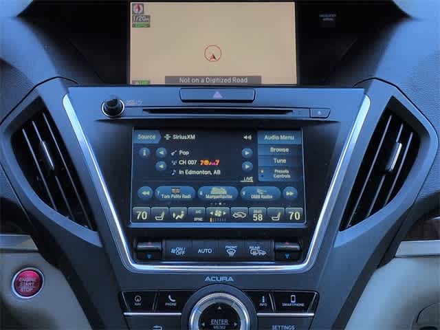 This 2018 Acura MDX 3.5L in Crystal Black Pearl, features 10 Speakers, 3rd row seats: bench, 4-Wheel Disc Brakes, 4.33 Axle Ratio, ABS brakes, Adaptive suspension, Air Conditioning, Alloy wheels, AM/FM radio: SiriusXM, Anti-whiplash front head restraints, Apple CarPlay/Android Auto, Audio memory, Auto High-beam Headlights, Auto tilt-away steering wheel, Auto-dimming Rear-View mirror, Automatic temperature control, Brake assist, Bumpers: body-color, CD player, Compass, Delay-off headlights, Driver door bin, Driver vanity mirror, Dual front impact airbags, Dual front side impact airbags, Electronic Stability Control, Emergency communication system: AcuraLink, Exterior Parking Camera Rear, Four wheel independent suspension, Front anti-roll bar, Front Bucket Seats, Front Center Armrest, Front dual zone A/C, Front reading lights, Garage door transmitter: HomeLink, Heated door mirrors, Heated front seats, Heated Front Sport Seats, HVAC memory, Illuminated entry, Knee airbag, Lane Departure Warning System, Leather steering wheel, Low tire pressure warning, Memory seat, Navigation System, Occupant sensing airbag, Outside temperature display, Overhead airbag, Overhead console, Panic alarm, Passenger door bin, Passenger vanity mirror, Power door mirrors, Power driver seat, Power Liftgate, Power moonroof, Power passenger seat, Power steering, Power windows, Premium audio system: Acura/ELS Surround, Premium Leather-Trimmed Interior, Radio data system, Radio: Acura/ELS Studio Premium Audio System, Rain sensing wipers, Rear air conditioning, Rear anti-roll bar, Rear reading lights, Rear seat center armrest, Rear window defroster, Rear window wiper, Remote keyless entry, Security system, Speed control, Speed-sensing steering, Speed-Sensitive Wipers, Split folding rear seat, Spoiler, Steering wheel memory, Steering wheel mounted audio controls, Tachometer, Telescoping steering wheel, Tilt steering wheel, Traction control, Trip computer, Turn signal indicator mirrors, Variably intermittent wipers, and Wheels: 20 x 8 Pewter Gray Metallic 10-Spoke: