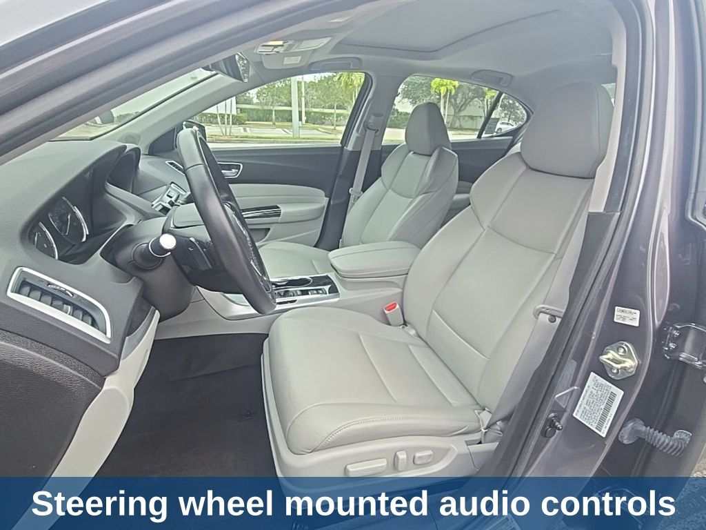 TLX 2.4L, 4D Sedan, 2.4L DOHC 16V, 8-Speed Dual-Clutch, FWD, Gray, 4-Wheel Disc Brakes, 7 Speakers, ABS brakes, Air Conditioning, Alloy wheels, AM/FM radio: SiriusXM, Anti-whiplash front head restraints, Apple CarPlay/Android Auto, Auto High-beam Headlights, Auto-dimming Rear-View mirror, Automatic temperature control, Brake assist, Bumpers: body-color, CD player, Compass, Delay-off headlights, Driver door bin, Driver vanity mirror, Dual front impact airbags, Dual front side impact airbags, Electronic Stability Control, Exterior Parking Camera Rear, Four wheel independent suspension, Front anti-roll bar, Front Bucket Seats, Front Center Armrest w/Storage, Front dual zone A/C, Front reading lights, Garage door transmitter: HomeLink, Heated door mirrors, Heated front seats, Heated Front Sport Seats, HVAC memory, Illuminated entry, Knee airbag, Lane departure: Lane Keeping Assist System (LKAS) active, Leather Shift Knob, Leather steering wheel, Leatherette-Trimmed Interior, Low tire pressure warning, Memory seat, Occupant sensing airbag, Outside temperature display, Overhead airbag, Overhead console, Panic alarm, Passenger door bin, Passenger vanity mirror, Power door mirrors, Power driver seat, Power moonroof, Power passenger seat, Power steering, Power windows, Radio data system, Radio: Acura Premium Audio System, Rear anti-roll bar, Rear reading lights, Rear seat center armrest, Rear window defroster, Remote keyless entry, Security system, Speed control, Speed-sensing steering, Speed-Sensitive Wipers, Split folding rear seat, Steering wheel mounted audio controls, Tachometer, Telescoping steering wheel, Tilt steering wheel, Traction control, Trip computer, Turn signal indicator mirrors, Variably intermittent wipers, Wheels: 17" x 7.5" Pewter Gray Aluminum Alloy.