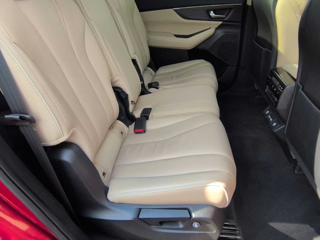 3rd row seats: split-bench, Apple CarPlay/Android Auto, Front Bucket Seats, Front fog lights, Fully automatic headlights, Heads-Up Display, Heated & Ventilated Front Sport Seats, Heated front seats, Heated rear seats, Heated steering wheel, Lane departure: Lane Keeping Assist System (LKAS) active, Memory seat, Navigation system: Acura Navigation System with 3D View, Perforated Premium Milano Leather Trimmed Seats, Power driver seat, Power Liftgate, Power moonroof, Power passenger seat, Premium audio system: Acura/ELS Studio 3D, Radio: ELS Studio 3D Premium Audio System, Split folding rear seat, Steering wheel memory, Steering wheel mounted audio controls, Ventilated front seats, Wheels: 20 x 9 Aluminum Alloy, 16 Speakers, 4-Wheel Disc Brakes, 4.17 Axle Ratio, A/V remote: CabinControl, ABS brakes, Adaptive suspension, Air Conditioning, Alloy wheels, AM/FM radio: SiriusXM, Anti-whiplash front head restraints, Audio memory, Auto High-beam Headlights, Auto tilt-away steering wheel, Auto-dimming Rear-View mirror, Automatic temperature control, Brake assist, Bumpers: body-color, Compass, Delay-off headlights, Driver door bin, Driver vanity mirror, Dual front impact airbags, Dual front side impact airbags, Electronic Stability Control, Emergency communication system: AcuraLink, Four wheel independent suspension, Front anti-roll bar, Front Center Armrest, Front dual zone A/C, Front reading lights, Garage door transmitter: HomeLink, Heated door mirrors, HVAC memory, Illuminated entry, Knee airbag, Leather steering wheel, Low tire pressure warning, Occupant sensing airbag, Outside temperature display, Overhead airbag, Overhead console, Panic alarm, Passenger door bin, Passenger vanity mirror, Power door mirrors, Power steering, Power windows, Radio data system, Rain sensing wipers, Rear air conditioning, Rear anti-roll bar, Rear reading lights, Rear seat center armrest, Rear window defroster, Rear window wiper, Remote keyless entry, Roof rack: rails only, Security system, Speed control, Speed-sensing steering, Speed-Sensitive Wipers, Spoiler, Tachometer, Telescoping steering wheel, Tilt steering wheel, Traction control, Trip computer, Turn signal indicator mirrors, and Variably intermittent wipers.