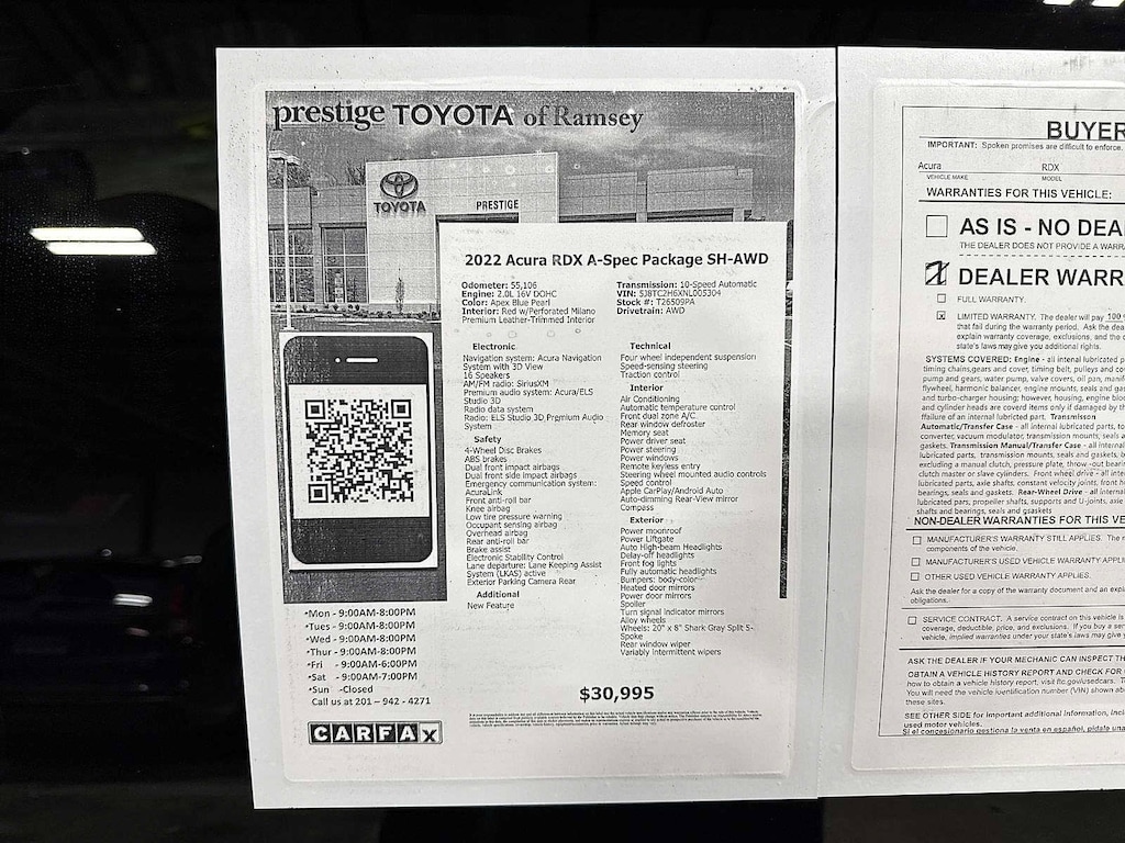 This 2022 Acura RDX A-Spec Package will not make it to the weekend!! CALL NOW to reserve your test drive!! (844) 838-7075 Please Visit www.PrestigeToyota.com for further details. Price does not include licensing costs, registration fees, taxes and dealer doc fee of $999 which are to be paid by the consumer.