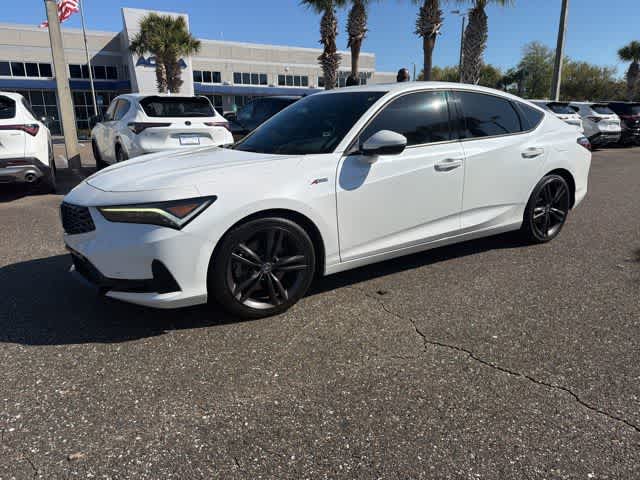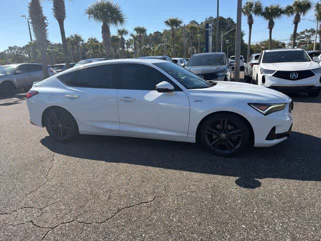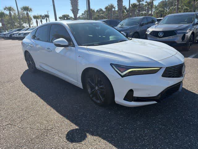 This 2023 Acura Integra A-Spec Tech Package in Platinum White Pearl, features 16 Speakers, 18 Alloy Wheels, 4-Wheel Disc Brakes, ABS brakes, Adaptive suspension, Air Conditioning, Alloy wheels, AM/FM radio: SiriusXM, Apple CarPlay/Android Auto, Auto High-beam Headlights, Auto-dimming Rear-View mirror, Automatic temperature control, Brake assist, Bumpers: body-color, Compass, Delay-off headlights, Driver door bin, Driver vanity mirror, Dual front impact airbags, Dual front side impact airbags, Electronic Stability Control, Emergency communication system: AcuraLink (subscription required), Four wheel independent suspension, Front anti-roll bar, Front Bucket Seats, Front Center Armrest, Front dual zone A/C, Front fog lights, Front reading lights, Fully automatic headlights, Heads-Up Display, Heated door mirrors, Heated Front Bucket Seats, Heated front seats, Illuminated entry, Knee airbag, Lane departure: Lane Keeping Assist System (LKAS) active, Leather Shift Knob, Low tire pressure warning, Memory seat, Occupant sensing airbag, Outside temperature display, Overhead airbag, Overhead console, Panic alarm, Passenger door bin, Passenger vanity mirror, Power door mirrors, Power driver seat, Power moonroof, Power passenger seat, Power steering, Power windows, Radio data system, Radio: ELS Studio 3D Premium Audio System, Rain sensing wipers, Rear anti-roll bar, Rear seat center armrest, Rear side impact airbag, Rear window defroster, Remote keyless entry, Security system, Speed control, Speed-sensing steering, Speed-Sensitive Wipers, Split folding rear seat, Spoiler, Steering wheel mounted audio controls, Suede-Trimmed Seating Surfaces w/Exclusive Stitch, Tachometer, Telescoping steering wheel, Tilt steering wheel, Traction control, Trip computer, Turn signal indicator mirrors, and Variably intermittent wipers: