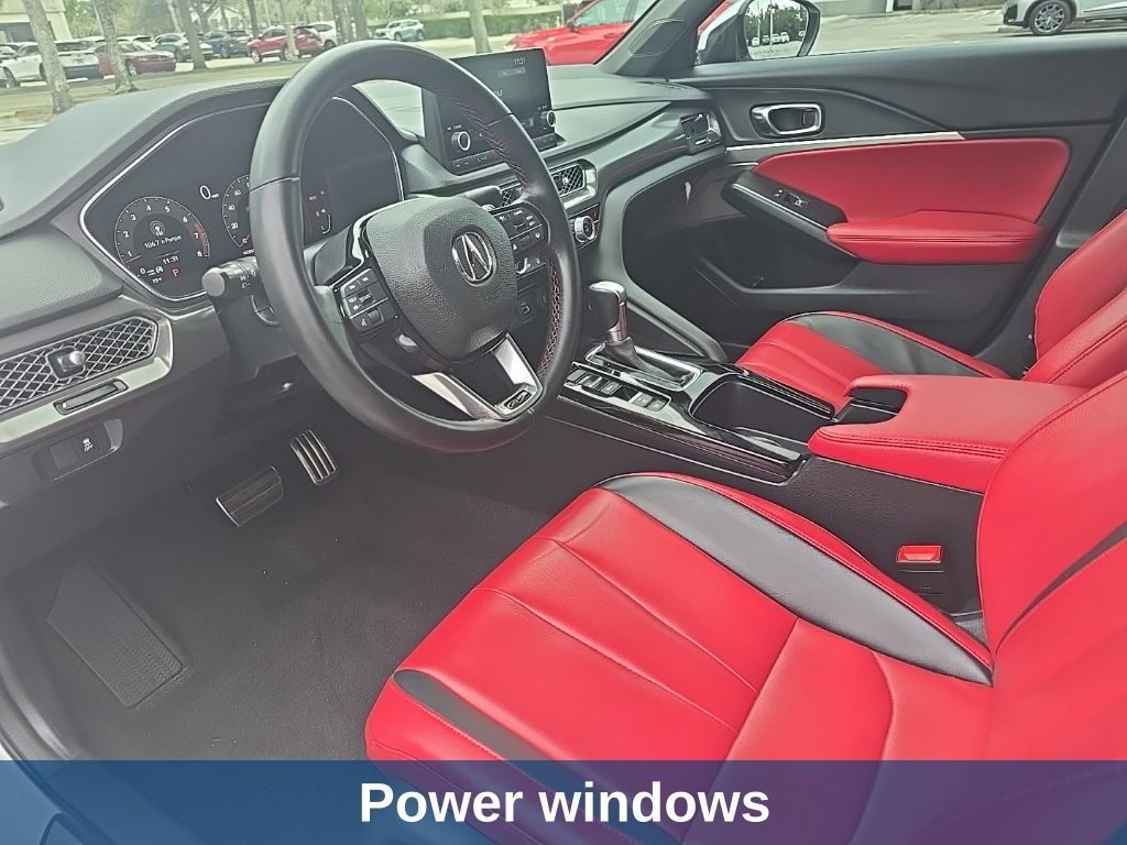 Integra A-Spec Package, 4D Hatchback, 1.5L I4 DOHC 16V, CVT, FWD, White, Red/Red Leatherette, 18" Alloy Wheels, 4-Wheel Disc Brakes, 8 Speakers, ABS brakes, Air Conditioning, Alloy wheels, AM/FM radio, Apple CarPlay/Android Auto, Auto High-beam Headlights, Auto-dimming Rear-View mirror, Automatic temperature control, Brake assist, Bumpers: body-color, Compass, Delay-off headlights, Driver door bin, Driver vanity mirror, Dual front impact airbags, Dual front side impact airbags, Electronic Stability Control, Four wheel independent suspension, Front anti-roll bar, Front Bucket Seats, Front Center Armrest, Front dual zone A/C, Front fog lights, Front reading lights, Fully automatic headlights, Heated door mirrors, Heated Front Bucket Seats, Heated front seats, Illuminated entry, Knee airbag, Lane departure: Lane Keeping Assist System (LKAS) active, Leather Shift Knob, Leatherette-Trimmed Seating Surfaces, Low tire pressure warning, Occupant sensing airbag, Outside temperature display, Overhead airbag, Overhead console, Panic alarm, Passenger door bin, Passenger vanity mirror, Power door mirrors, Power driver seat, Power moonroof, Power steering, Power windows, Radio data system, Radio: Acura Premium Audio System, Rear anti-roll bar, Rear seat center armrest, Rear side impact airbag, Rear window defroster, Remote keyless entry, Security system, Speed control, Speed-sensing steering, Speed-Sensitive Wipers, Split folding rear seat, Spoiler, Steering wheel mounted audio controls, Tachometer, Telescoping steering wheel, Tilt steering wheel, Traction control, Trip computer, Variably intermittent wipers.