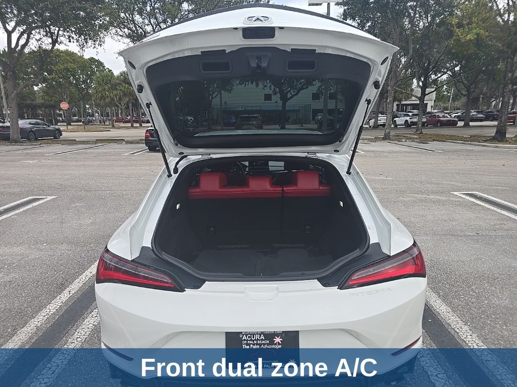 This Integra is well equipped with Integra A-Spec Package, 4D Hatchback, 1.5L I4 DOHC 16V, CVT, FWD, White, Red/Red Leatherette, 18" Alloy Wheels, 4-Wheel Disc Brakes, 8 Speakers, ABS brakes, Air Conditioning, Alloy wheels, AM/FM radio, Apple CarPlay/Android Auto, Auto High-beam Headlights, Auto-dimming Rear-View mirror, Automatic temperature control, Brake assist, Bumpers: body-color, Compass, Delay-off headlights, Driver door bin, Driver vanity mirror, Dual front impact airbags, Dual front side impact airbags, Electronic Stability Control, Four wheel independent suspension, Front anti-roll bar, Front Bucket Seats, Front Center Armrest, Front dual zone A/C, Front fog lights, Front reading lights, Fully automatic headlights, Heated door mirrors, Heated Front Bucket Seats, Heated front seats, Illuminated entry, Knee airbag, Lane departure: Lane Keeping Assist System (LKAS) active, Leather Shift Knob, Leatherette-Trimmed Seating Surfaces, Low tire pressure warning, Occupant sensing airbag, Outside temperature display, Overhead airbag, Overhead console, Panic alarm, Passenger door bin, Passenger vanity mirror, Power door mirrors, Power driver seat, Power moonroof, Power steering, Power windows, Radio data system, Radio: Acura Premium Audio System, Rear anti-roll bar, Rear seat center armrest, Rear side impact airbag, Rear window defroster, Remote keyless entry, Security system, Speed control, Speed-sensing steering, Speed-Sensitive Wipers, Split folding rear seat, Spoiler, Steering wheel mounted audio controls, Tachometer, Telescoping steering wheel, Tilt steering wheel, Traction control, Trip computer, and Variably intermittent wipers. Price does not include $1,199 predelivery service fee, tax, title, or license. Optional equipment and accessories available, see dealer for details. *Some of our pre-owned vehicles may be subject to unrepaired safety recalls. Check for a vehicle's unrepaired recalls by VIN at http://vinrcl.safercar.gov/vin.