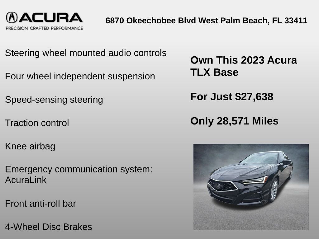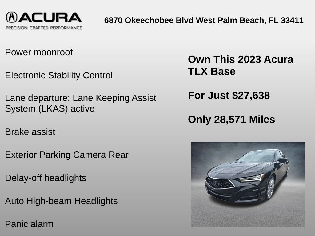This TLX is well equipped with TLX Technology Package, 4D Sedan, 2.0L DOHC, 10-Speed Automatic, FWD, Black, Ebony Leather, 13 Speakers, 4-Wheel Disc Brakes, ABS brakes, Acura Navigation System w/3D View, Air Conditioning, Alloy wheels, AM/FM radio: SiriusXM, Anti-whiplash front head restraints, Apple CarPlay/Android Auto, Auto High-beam Headlights, Auto-dimming Rear-View mirror, Automatic temperature control, Brake assist, Bumpers: body-color, Compass, Delay-off headlights, Driver door bin, Driver vanity mirror, Dual front impact airbags, Dual front side impact airbags, Electronic Stability Control, Emergency communication system: AcuraLink, Exterior Parking Camera Rear, Four wheel independent suspension, Front anti-roll bar, Front Bucket Seats, Front Center Armrest w/Storage, Front dual zone A/C, Front reading lights, Garage door transmitter: HomeLink, Heated door mirrors, Heated front seats, Heated Front Sport Seats, HVAC memory, Illuminated entry, Knee airbag, Lane departure: Lane Keeping Assist System (LKAS) active, Leather steering wheel, Low tire pressure warning, Memory seat, Navigation system: Acura Navigation System with 3D View, Occupant sensing airbag, Outside temperature display, Overhead airbag, Overhead console, Panic alarm, Passenger door bin, Passenger vanity mirror, Power door mirrors, Power driver seat, Power moonroof, Power passenger seat, Power steering, Power windows, Prem Perforated Milano Leather-Trimmed Interior, Premium audio system: Acura/ELS Surround, Radio data system, Radio: ELS Studio Premium Audio System, Rear anti-roll bar, Rear reading lights, Rear seat center armrest, Rear window defroster, Remote keyless entry, Security system, Speed control, Speed-sensing steering, Speed-Sensitive Wipers, Split folding rear seat, Steering wheel mounted audio controls, Tachometer, Telescoping steering wheel, Ti