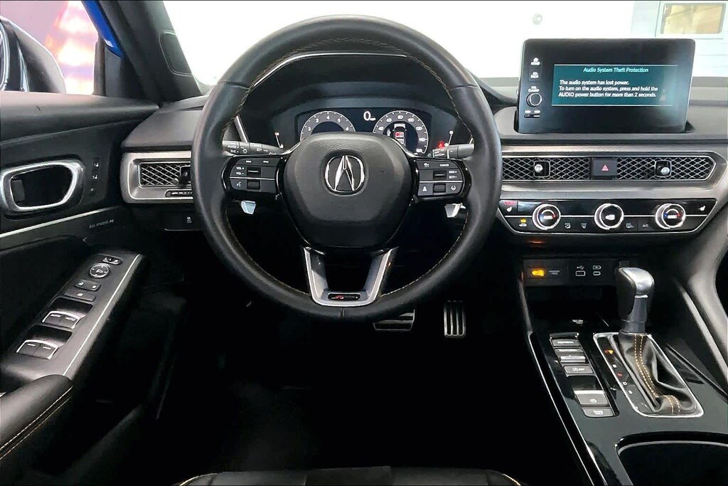 Integra A-Spec Tech Package is nicely equipped with 16 Speakers, 18 Aluminum Alloy Wheels, 4-Wheel Disc Brakes, ABS brakes, Adaptive suspension, Air Conditioning, Alloy wheels, AM/FM radio: SiriusXM, Apple CarPlay/Android Auto, Auto High-beam Headlights, Auto-dimming Rear-View mirror, Automatic temperature control, Brake assist, Bumpers: body-color, Compass, Delay-off headlights, Driver door bin, Driver vanity mirror, Dual front impact airbags, Dual front side impact airbags, Electronic Stability Control, Emergency communication system: AcuraLink (subscription required), Four wheel independent suspension, Front anti-roll bar, Front Bucket Seats, Front Center Armrest, Front dual zone A/C, Front fog lights, Front reading lights, Fully automatic headlights, Heads-Up Display, Heated door mirrors, Heated Front Bucket Seats, Heated front seats, Illuminated entry, Knee airbag, Lane departure: Lane Keeping Assist System (LKAS) active, Leather Shift Knob, Leather steering wheel, Low tire pressure warning, Memory seat, Microsuede-Trimmed Front Seats with Exclusive Stitch, Occupant sensing airbag, Outside temperature display, Overhead airbag, Overhead console, Panic alarm, Passenger door bin, Passenger vanity mirror, Power door mirrors, Power driver seat, Power moonroof, Power passenger seat, Power steering, Power windows, Radio data system, Radio: ELS Studio 3D Premium Audio System, Rain sensing wipers, Rear anti-roll bar, Rear seat center armrest, Rear side impact airbag, Rear window defroster, Remote keyless entry, Security system, Speed control, Speed-sensing steering, Speed-Sensitive Wipers, Split folding rear seat, Spoiler, Steering wheel mounted audio controls, Tachometer, Telescoping steering wheel, Tilt steering wheel, Traction control, Trip computer, Turn signal indicator mirrors, and Variably intermittent wipers.