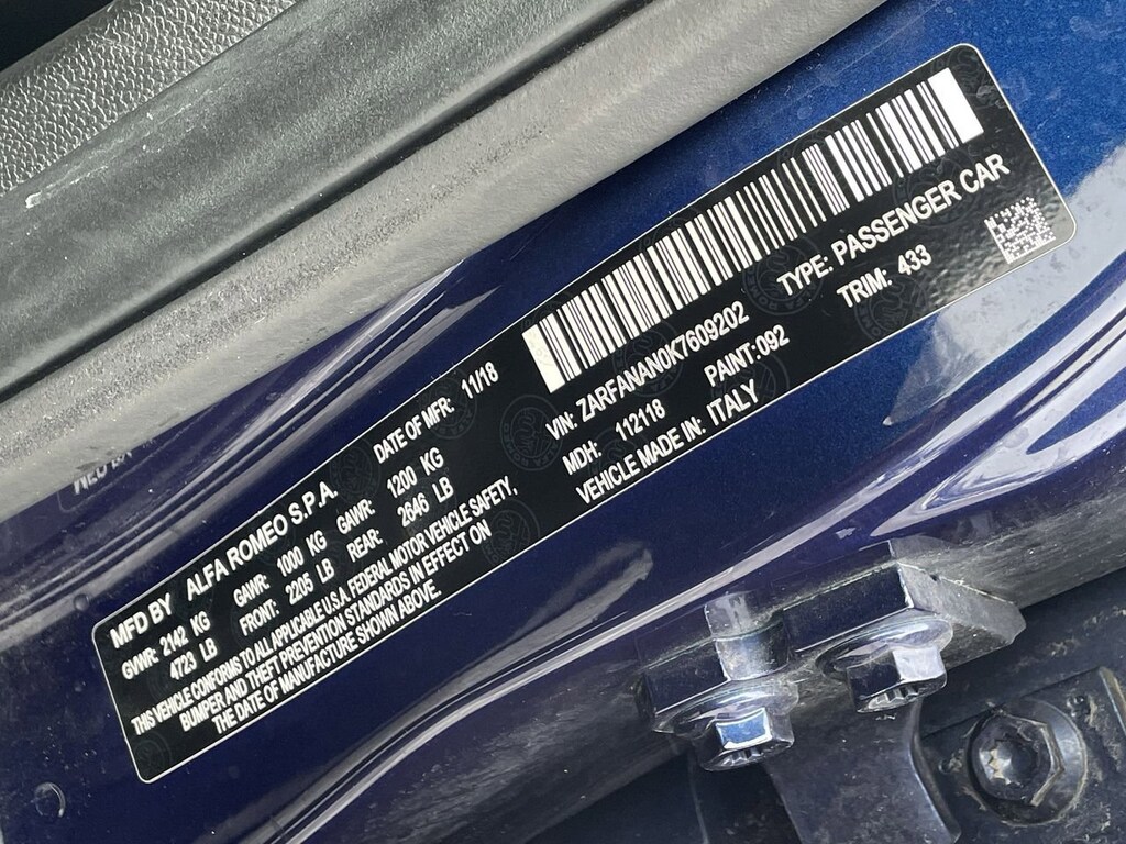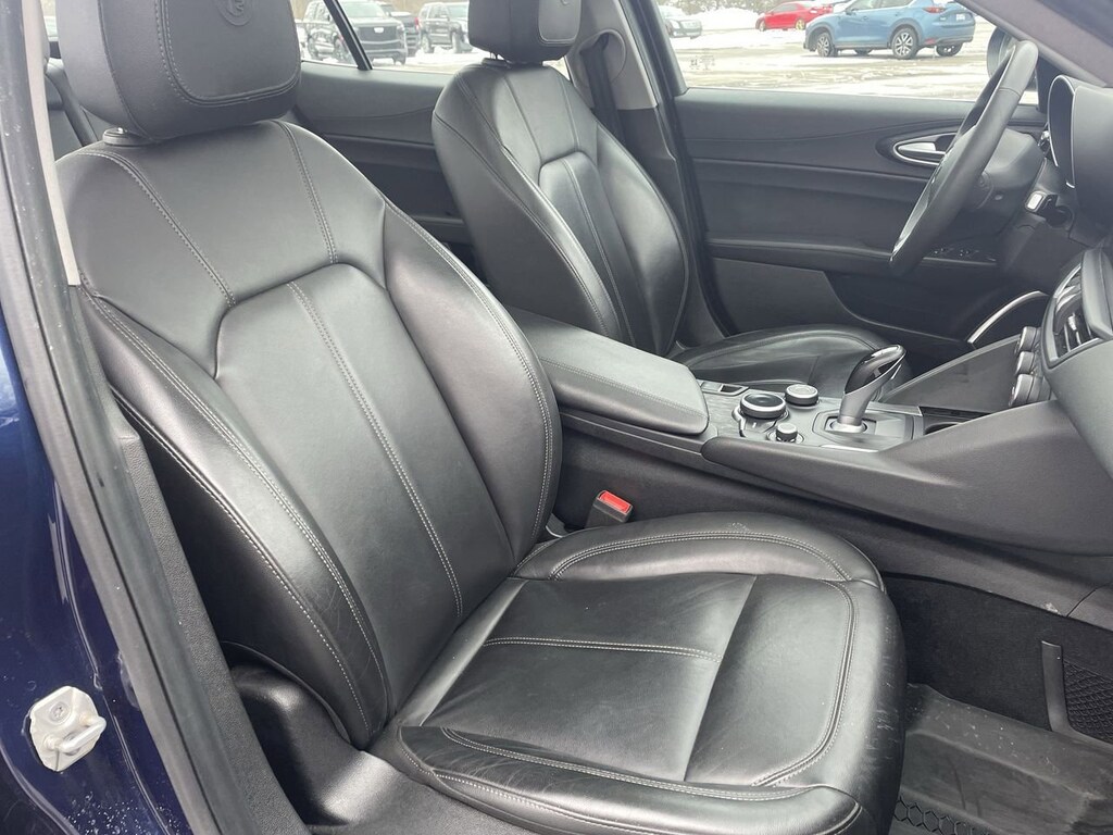 Our sleek, One Owner 2019 Alfa Romeo Giulia AWD Sedan with the Cold Weather and Driver Assist Packages takes advantage of iconic style and performance in Montecarlo Blue Metallic, and so can you! Motivated by a TurboCharged 2.0 Liter 4 Cylinder supplying 280hp paired to an 8 Speed Automatic transmission so you can dash to 60mph in a dramatic 5.1 seconds. This All Wheel Drive sedan also rewards you with responsive handling and a DNA Drive Mode system, plus it achieves nearly 31mpg on the highway. The premium design of our Giulia creates a bold presence with LED lighting, bi-xenon headlamps, quad exhaust tips, and alloy wheels with visible silver brake calipers.