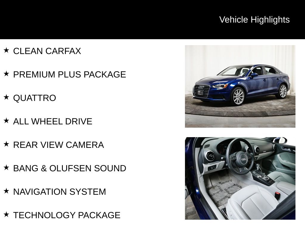 This 2016 Audi A3 2.0T Premium Plus quattro is a standout vehicle that combines exceptional performance, advanced technology, and refined style. With its sleek blue exterior and well-appointed interior, this A3 is sure to turn heads wherever you go.