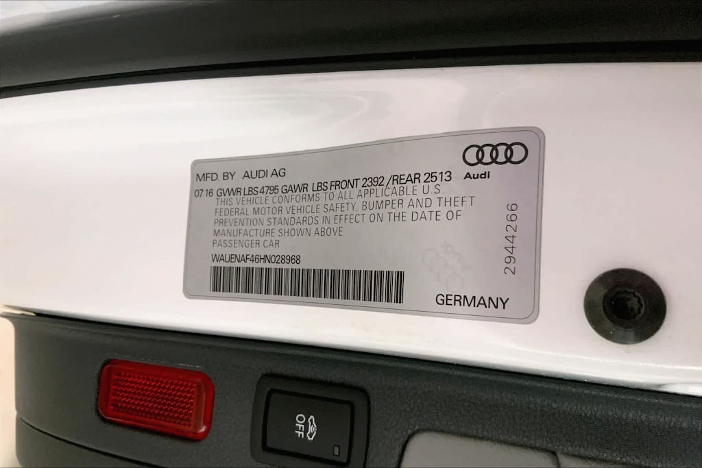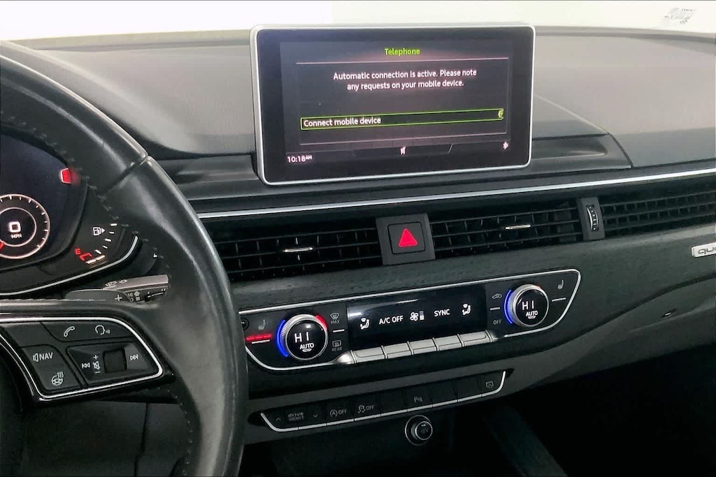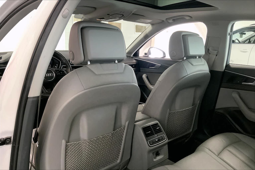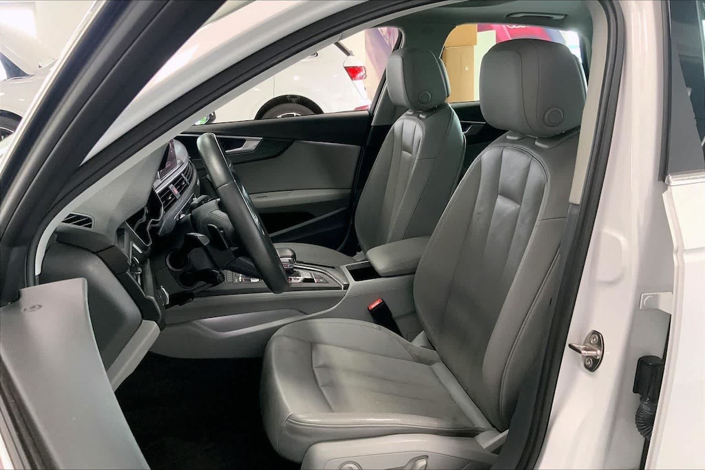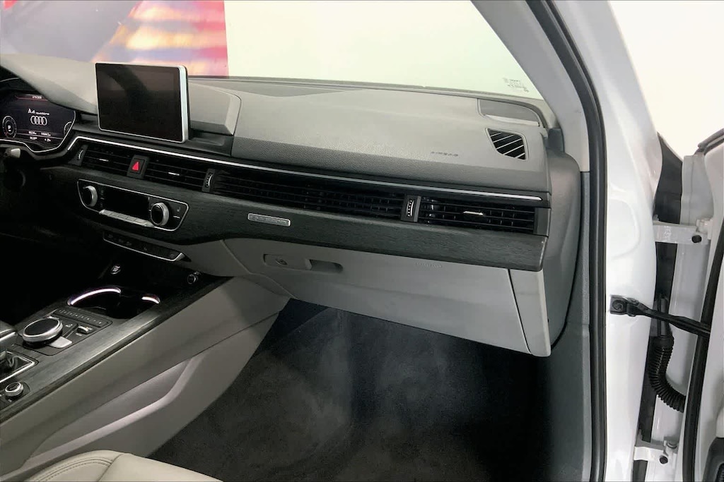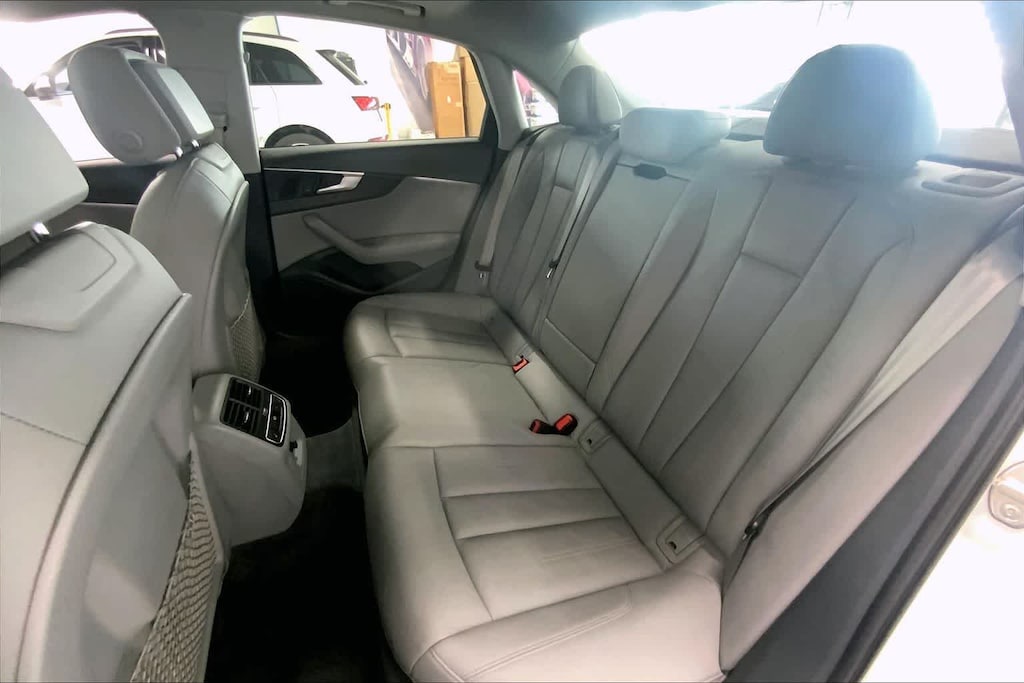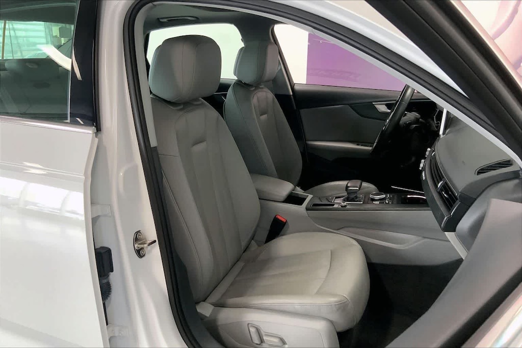 A4 2.0T Premium Plus is nicely equipped with Cold Weather Package (Heated Rear Seats), Convenience Package (SiriusXM Satellite Radio), Premium Plus Package (Aluminum High-Gloss Window Surrounds, Heated Front Seats, Parking System Plus, and Wheels: 8 x 18 5-Spoke Dynamic Design), Technology Package (Audi Connect PRIME & PLUS, Audi Pre Sense Rear, Audi Virtual Cockpit, and Radio: Audi MMI Navigation Plus w/MMI Touch), 7-Speed Automatic S tronic, quattro, Gray Leather, 10 Speakers, 4-Wheel Disc Brakes, ABS brakes, Air Conditioning, Alloy wheels, AM/FM radio, Anti-whiplash front head restraints, Auto-dimming Rear-View mirror, Automatic temperature control, Brake assist, Bumpers: body-color, CD player, Compass, Delay-off headlights, Delete Front License Plate Holder, Driver door bin, Driver vanity mirror, Dual front impact airbags, Dual front side impact airbags, Electronic Stability Control, Exterior Parking Camera Rear, Four wheel independent suspension, Front anti-roll bar, Front Bucket Seats, Front Center Armrest, Front dual zone A/C, Front fog lights, Front reading lights, Garage door transmitter: HomeLink, Heated door mirrors, High intensity discharge headlights: Xenon plus, Illuminated entry, Knee airbag, Leather Seating Surfaces, Leather Shift Knob, Leather steering wheel, Low tire pressure warning, Natural Gray Oak Inlays, Occupant sensing airbag, Outside temperature display, Overhead airbag, Overhead console, Panic alarm, Passenger door bin, Passenger vanity mirror, Power door mirrors, Power driver seat, Power Front Bucket Seats, Power moonroof, Power passenger seat, Power steering, Power windows, Radio data system, Radio: Audi Sound System, Rain sensing wipers, Rear air conditioning, Rear anti-roll bar, Rear fog lights, Rear reading lights, Rear seat center armrest, Rear window defroster, Remote keyless entry, Speed control, Speed-sensing steering, Speed-Sensitive Wipers, Split folding rear seat, Steering wheel mounted audio controls, Tachometer, Telescoping steering wheel, Tilt steering wheel, Traction control, Trip computer, Turn signal indicator mirrors, Variably intermittent wipers, and Wheels: 7.5 x 17 5-Parallel Spoke Design.