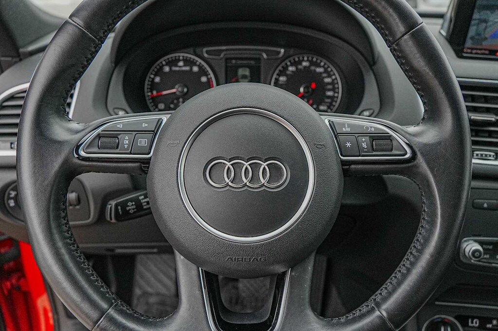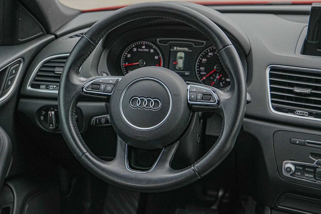 Q3 2.0T Premium, Misano Red Pearl, Black Leather, 10 Speakers, 4-Wheel Disc Brakes, ABS brakes, Air Conditioning, Alloy wheels, AM/FM radio: SiriusXM, Automatic temperature control, Axle Ratio: TBD, Brake assist, Bumpers: body-color, CD player, Delay-off headlights, Driver door bin, Driver vanity mirror, Dual front impact airbags, Dual front side impact airbags, Electronic Stability Control, Exterior Parking Camera Rear, Four wheel independent suspension, Front anti-roll bar, Front Bucket Seats, Front Center Armrest, Front dual zone A/C, Front fog lights, Front reading lights, Fully automatic headlights, Heated door mirrors, Heated Front Seats, High intensity discharge headlights: Xenon plus, Illuminated entry, Leather Seating Surfaces, Leather Shift Knob, Leather steering wheel, Low tire pressure warning, Occupant sensing airbag, Outside temperature display, Overhead airbag, Overhead console, Panic alarm, Passenger door bin, Passenger vanity mirror, Power door mirrors, Power driver seat, Power moonroof, Power Passenger Seat, Power steering, Power windows, Radio data system, Rain sensing wipers, Rear anti-roll bar, Rear fog lights, Rear reading lights, Rear seat center armrest, Rear window defroster, Rear window wiper, Remote keyless entry, Roof rack: rails only, Security system, Speed control, Speed-sensing steering, Split Folding Fear Seat, Spoiler, Steering wheel mounted audio controls, Tachometer, Telescoping steering wheel, Tilt steering wheel, Traction control, Trip computer, Turn signal indicator mirrors, Variably intermittent wipers, Q3 2.0T Premium, Misano Red Pearl, Black Leather.