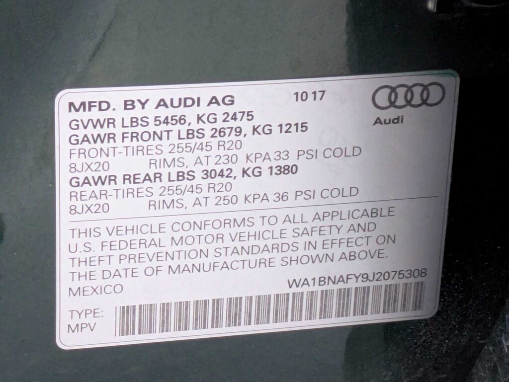 PREMIUM PLUS PACKAGE Audi Connect CARE, assistance and security services w/limited time subscription, Audi Side Assist w/Pre Sense Rear, Rear Cross Traffic Assist, Vehicle Exit Assist, SiriusXM All Access Service, Heated Auto-Dimming & Power-Adjustable Mirrors, Body-colored and power folding, Parking System Plus (Front/Rear Acoustic Sensors), selective display, automatically engages in drive and reverse under 6 mph, can be disabled in the MMI settings or temporarily turned off by simply pressing the P button on the center console, Driver Seat Memory, Full LED Headlights, LED dipped and high beams, DRLs, static turn signals as well as all-weather light, Stainless Steel Door Sills, High Gloss Window Surrounds, Audi Advanced Key, keyless start/stop and entry, NAVIGATION PACKAGE Audi Virtual Cockpit, 12.3 LCD fully digital instrument cluster and up to three visual modes: classic and infotainment, Audi Connect PRIME & PLUS, online services w/, Radio: MMI Navigation Plus System, 8.3 TFT color center infotainment/navigation display, MMI all-in-touch w/handwriting-recognition technology (all-in-touch adds capacitive menu and back functions, two touch keys for horizontal menu control logic and eight radio preset selections in addition to the traditional compact MMI scroll wheel capabilities), WHEELS: 8 X 20 5-SPOKE SEGMENT DESIGN Tires: 255/45R20 101H AS, WARM WEATHER PACKAGE 3-Step Front Seat Ventilation, Manual Rear Side Window Sunshades, 12-Way Power Front Sport Seats, 4-way power lumbar adjustment, TRAILER HITCH, AUDI GUARD PROTECTION KIT All Weather Floor Mats, Cargo Mat, BLACK PRIVACY TRUNK COVER. Audi Premium Plus with Azores Green metallic exterior and Nougat Brown / Black interior features a 4 Cylinder Engine with 252 HP at 5000 RPM*.