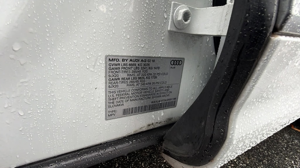 PREMIUM PLUS PACKAGE 3D Bose Surround Sound System, LED Interior Lighting Package, door insert, door inlay, contour, instrument panel contour and door pocket LED accents, Audi Side Assist w/Pre Sense Rear, Audi Smartphone Interface, Apple CarPlay®/Android Auto®, Audi Connect PRIME & PLUS, Audi Connect CARE, limited time subscription, Audi MMI Navigation Plus w/MMI Touch, INRIX XD Traffic, Audi connect w/, Audi smartphone integration and MMI all-in-touch w/handwriting-recognition technology, Electric Tilt/Telescopic Steering Column w/Memory, Heated Auto-Dimming Power Folding Exterior Mirrors, memory, DRIVER ASSISTANCE PACKAGE Audi Adaptive Cruise Control w/Stop & Go, traffic jam assist, Traffic Sign Recognition, vehicle speed warning, Audi Pre Sense Front, Audi Active Lane Assist, High Beam Assistant, VISION PACKAGE Full LED Headlights, LED dipped and high beams, daytime running lights, static turn signals and all-weather light, Audi Virtual Cockpit, 12.3 inch LCD fully digital instrument cluster w/1,440 x 540 pixel resolution and two visual modes: classic and infotainment, Topview Camera System, WARM WEATHER PACKAGE 4-Zone Automatic Climate Control, diffuser vent w/Alu-optic trim, Manual Window Shades For Rear Doors & Tailgate, Driver & Passenger Front Seats w/Ventilation, 4-way power lumbar, WHEELS: 20 10-SPOKE-STAR DESIGN BI-COLOR Tires: 285/45R20 All-Season Run-Flat, TOWING PACKAGE 7,700 lbs towing capacity and trailer hitch, PRIVACY TRUNK COVER retractable/removable cover for cargo space. Audi Premium Plus with Glacier White metallic exterior and Black interior features a V6 Cylinder Engine with 333 HP at 5500 RPM*.