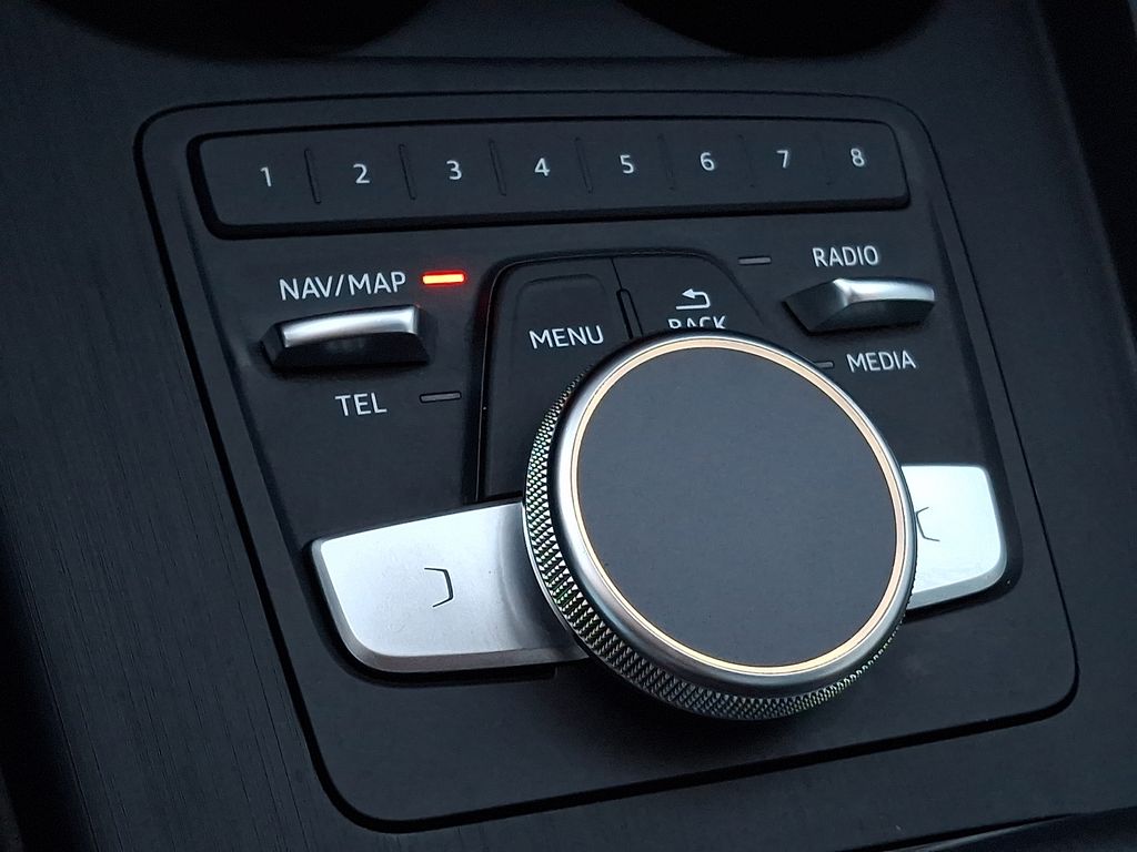 Second, upfront interior storage is nearly nonexistent. There appears to have been only a halfhearted attempt to provide in-console storage, which amounts to a tiny, shallow bin that has only a partially enclosing lid—one that doesn’t fully conceal the few articles one is able to fit in it. And unlike other cars in this class, there’s no dedicated compartment in which to store sunglasses, forcing you to be creative with where you choose to stow them. On top of all that, the cup holders are placed so close to the center dash controls that they can barely hold anything larger than a small water bottle or a medium size drink before interfering with the use of those controls. So no Big Gulps allowed in this A5’s cozy cockpit!