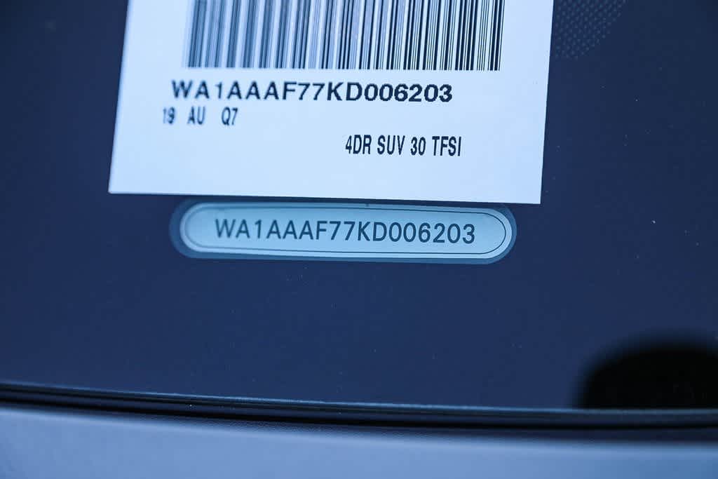 Clean CARFAX. Gray Metallic 2019 Audi Q7 55 Premium quattro quattro 8-Speed Automatic with Tiptronic 3.0L TFSI V6 DOHC Non-Smoker, Clean CarFax, OIL CHANGED, ** BACK UP CAMERA, ** LEATHER SEATS, ** NON - SMOKER, Q7 55 Premium quattro, 4D Sport Utility, 3.0L TFSI V6 DOHC, 8-Speed Automatic with Tiptronic, quattro, 3-Spoke Multifunction Steering Wheel w/Paddles, Air Conditioning, Audi Phone Box w/Wireless Charging, Audi Side Assist w/Pre Sense Rear, Black Rubber All-Weather Floor Mats (Set of 4), Cold Weather Package, Convenience Package, Dual front impact airbags, Emergency communication system: Audi connect CARE, Front dual zone A/C, Heated Auto-Dimming Power Folding Exterior Mirrors, Heated Rear Seats, Navigation system: MMI Navigation plus, Occupant sensing airbag, Passenger door bin, Power Liftgate, Power moonroof, Power steering, Privacy Trunk Cover, Rear reading lights, Remote keyless entry, Telescoping steering wheel.