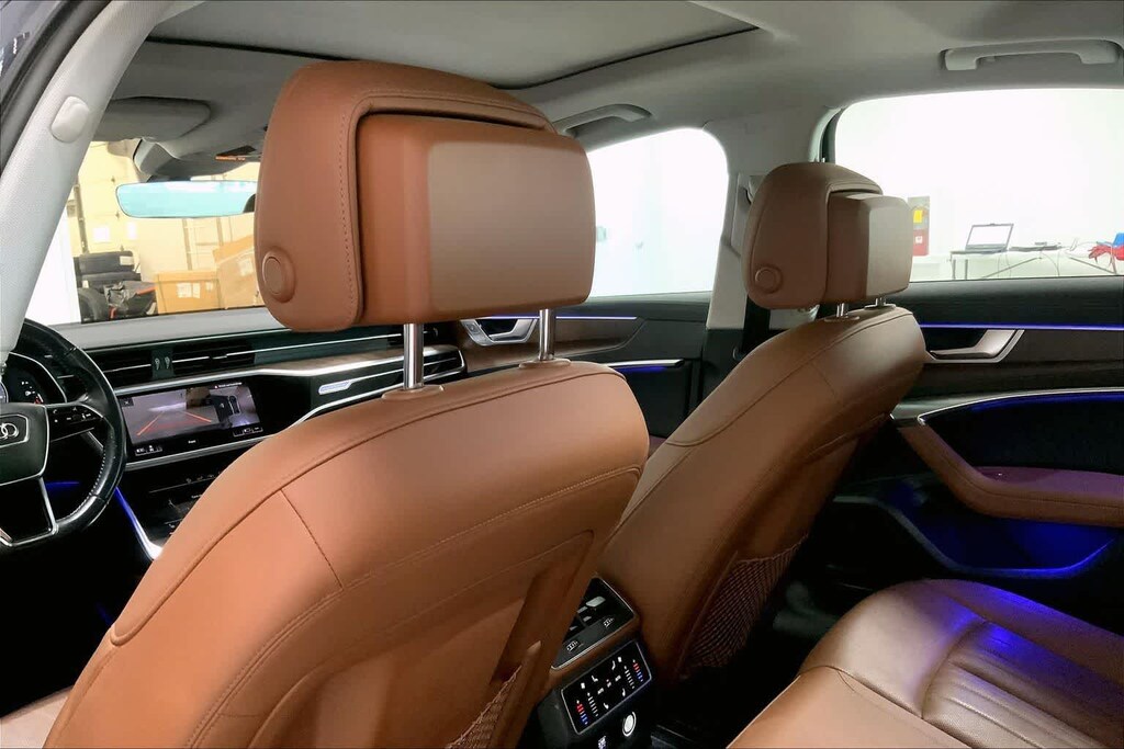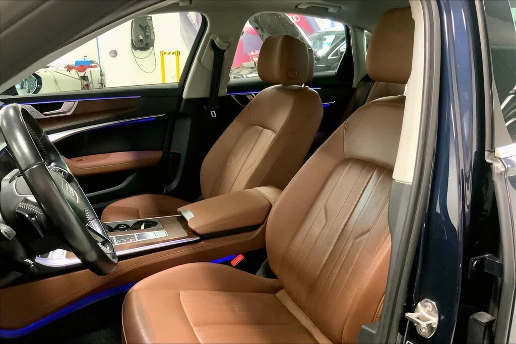 A6 3.0T Premium Plus is nicely equipped with 20 Sport Package (Sport Suspension (20mm Drop) and Wheels: 20 5-V-Spoke Bi-Color), Convenience Package (Audi Advanced Key, Audi Phone Box w/Wireless Charging, Audi Pre Sense Rear, Audi Side Assist w/Rear Cross Traffic Assist, and Heated 3-Spoke Multifunction Steering Wheel), Driver Assistance Package (Audi Active Lane Assist w/Emergency Assist, Audi Adaptive Cruise Assist, and Traffic Sign Recognition), Executive Package (4-Zone Automatic Climate Control, Front Seat Ventilation & 4-Way Power Lumbar, Heated Rear Seats, Multicolor Contour/Ambient LED Int Lighting Pkg, and Open & Close Power Trunk), Interior Protection Package, Premium Plus Package (Audi Virtual Cockpit Plus, Bang & Olufsen 3D Premium Sound System, Contrast Stitching on Door Armrests & Knee Bolster, Headlight Washer System, Matrix-Design Headlights w/Highbeam Assist, Radio: MMI Navigation Plus w/MMI Touch Response, and Top View Camera System w/Virtual 360 View), quattro, Brown Leather, 10 Speakers, 4-Wheel Disc Brakes, ABS brakes, Air Conditioning, Alloy wheels, AM/FM radio: SiriusXM, Audi smartphone interface (Apple CarPlay/Android Auto), Auto High-beam Headlights, Auto tilt-away steering wheel, Auto-dimming door mirrors, Auto-dimming Rear-View mirror, Automatic temperature control, Brake assist, Bumpers: body-color, Compass, Delay-off headlights, Driver door bin, Driver vanity mirror, Dual front impact airbags, Dual front side impact airbags, Electronic Stability Control, Emergency communication system: Audi connect CARE, Exterior Parking Camera Rear, Four wheel independent suspension, Front & Rear Door Audi Beam-Rings, Front anti-roll bar, Front Bucket Seats, Front Center Armrest, Front dual zone A/C, Front fog lights, Front reading lights, Garage door transmitter: HomeLink, Genuine wood console insert, Genuine wood dashboard insert, Genuine wood door panel insert, Heated door mirrors, Heated Front Seats, Heated front seats, Illuminated entry, Knee airbag, Leather Seating Surfaces, Leather Shift Knob, Low tire pressure warning, Memory seat, Navigation System, Occupant sensing airbag, Outside temperature display, Overhead airbag, Overhead console, Panic alarm, Passenger door bin, Passenger vanity mirror, Power door mirrors, Power driver seat, Power moonroof, Power passenger seat, Power steering, Power windows, Radio data system, Radio: MMI Navigation w/MMI Touch Response, Rain sensing wipers, Rear air conditioning, Rear anti-roll bar, Rear reading lights, Rear seat center armrest, Rear window defroster, Remote keyless entry, Security system, Speed control, Speed-sensing steering, Speed-Sensitive Wipers, Split folding rear seat, Steering wheel memory, Steering wheel mounted audio controls, Tachometer, Telescoping steering wheel, Tilt steering wheel, Traction control, Trip computer, Turn signal indicator mirrors, Variably intermittent wipers, and Wheels: 19 5-Twin-Spoke Bi Color.