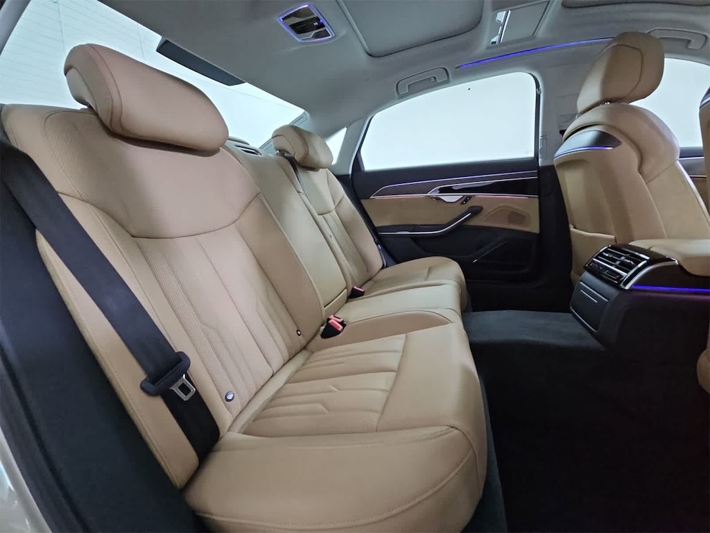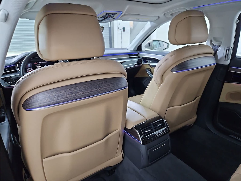 Leather, 17 Speakers, 4-Wheel Disc Brakes, ABS brakes, Adaptive suspension, Air Conditioning, Alloy wheels, AM/FM radio: SiriusXM, Audi smartphone interface (Apple CarPlay/Android Auto), Auto High-beam Headlights, Auto tilt-away steering wheel, Auto-dimming door mirrors, Auto-dimming Rear-View mirror, Auto-leveling suspension, Automatic temperature control, Bang & Olufsen 3D Premium Sound System, Brake assist, Bumpers: body-color, Compass, Delay-off headlights, Door auto-latch, Driver door bin, Driver vanity mirror, Dual front impact airbags, Dual front side impact airbags, Electronic Stability Control, Emergency communication system: Audi connect CARE, Exterior Parking Camera Rear, Four wheel independent suspension, Front anti-roll bar, Front Bucket Seats, Front Center Armrest w/Storage, Front dual zone A/C, Front fog lights, Front reading lights, Garage door transmitter: HomeLink, Genuine wood console insert, Head restraints memory, Headlight cleaning, Heated door mirrors, Heated Front Seats, Heated front seats, HVAC memory, Illuminated entry, Knee airbag, Leather Shift Knob, Leather steering wheel, Low tire pressure warning, Memory seat, Navigation system: MMI Navigation plus, Occupant sensing airbag, Outside temperature display, Overhead airbag, Overhead console, Panic alarm, Passenger door bin, Passenger vanity mirror, Power 2nd-Row Moonroof, Power adjustable front head restraints, Power door mirrors, Power driver seat, Power moonroof, Power passenger seat, Power steering, Power windows, Radio data system, Radio: MMI Navigation Plus, Rain sensing wipers, Rear air conditioning, Rear anti-roll bar, Rear dual zone A/C, Rear fog lights, Rear reading lights, Rear seat center armrest, Rear side impact airbag, Rear Window Blind, Rear window defroster, Remote keyless entry, Seatbelt memory, Security system, Speed control, Speed-sensing steering, Speed-Sensitive Wipers, Steering wheel memory, Steering wheel mounted audio controls, Tachometer, Telescoping steering wheel, Tilt steering wheel, Traction control, Trip computer, Turn signal indicator mirrors, Valetta Leather Seat Upholstery, Variably intermittent wipers, Wheels: 19 15-Spoke Design, Leather.