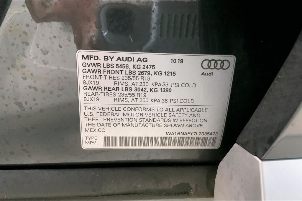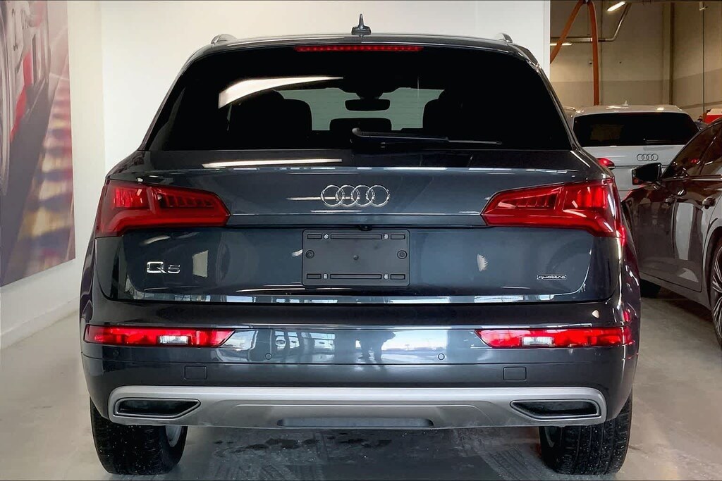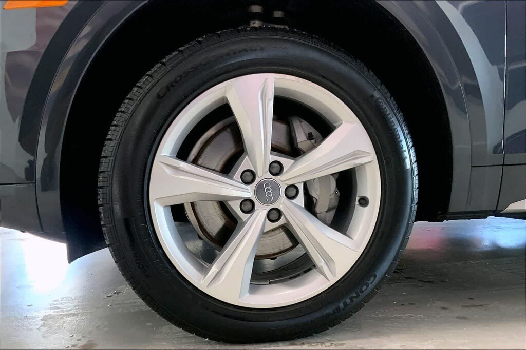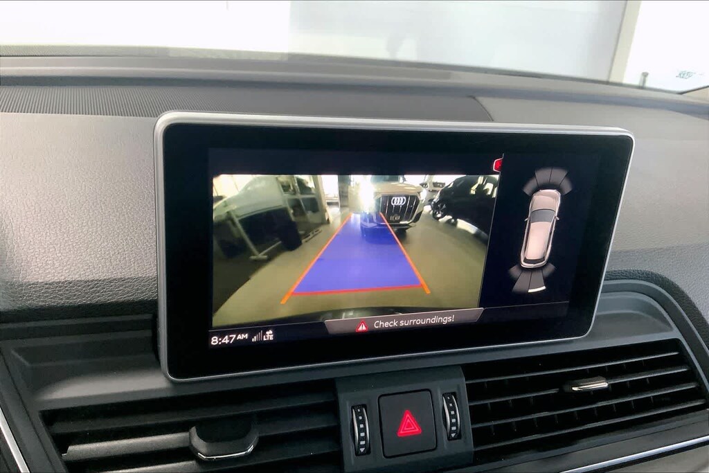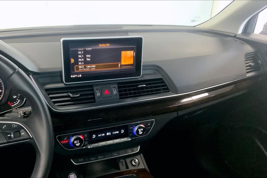 Q5 45 Premium Plus is nicely equipped with Leather, 10 Speakers, 4-Wheel Disc Brakes, 5.302 Axle Ratio, ABS brakes, Air Conditioning, Alloy wheels, AM/FM radio, Audi smartphone interface (Apple CarPlay/Android Auto), Auto High-beam Headlights, Auto-dimming Rear-View mirror, Automatic temperature control, Brake assist, Bumpers: body-color, Compass, Delay-off headlights, Driver door bin, Driver vanity mirror, Dual front impact airbags, Dual front side impact airbags, Electronic Stability Control, Emergency communication system: Audi connect CARE, Exterior Parking Camera Rear, Four wheel independent suspension, Front anti-roll bar, Front Bucket Seats, Front Center Armrest, Front dual zone A/C, Front fog lights, Front reading lights, Garage door transmitter: HomeLink, Genuine wood console insert, Genuine wood dashboard insert, Genuine wood door panel insert, Heated 8-Way Power Front Bucket Seats, Heated door mirrors, Heated front seats, High intensity discharge headlights: Xenon plus, Illuminated entry, Leather Seating Surfaces, Leather Shift Knob, Leather steering wheel, Low tire pressure warning, Occupant sensing airbag, Outside temperature display, Overhead airbag, Overhead console, Panic alarm, Passenger door bin, Passenger vanity mirror, Power door mirrors, Power driver seat, Power Liftgate, Power passenger seat, Power steering, Power windows, Radio data system, Radio: Audi Sound System w/7 Display, Rain sensing wipers, Rear air conditioning, Rear anti-roll bar, Rear fog lights, Rear reading lights, Rear seat center armrest, Rear window defroster, Rear window wiper, Remote keyless entry, Roof rack, Security system, Speed control, Speed-sensing steering, Speed-Sensitive Wipers, Split folding rear seat, Spoiler, Steering wheel mounted audio controls, Tachometer, Telescoping steering wheel, Tilt steering wheel, Traction control, Trip computer, Turn signal indicator mirrors, Variably intermittent wipers, and Wheels: 18 5-Arm-Turbine Design.