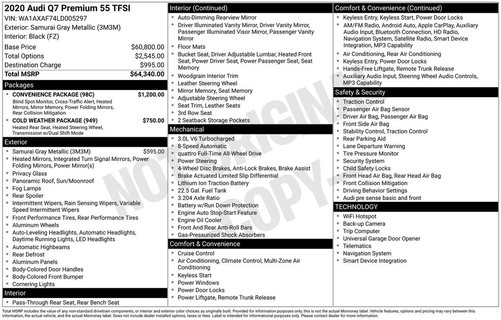 With its exceptional build quality, refined driving dynamics, and impressive array of features, this 2020 Audi Q7 55 Premium quattro is a compelling choice for the discerning buyer seeking a versatile and luxurious SUV. We invite you to experience its exceptional capabilities firsthand. Contact us today to schedule a test drive and see why this Q7 should be your next vehicle.