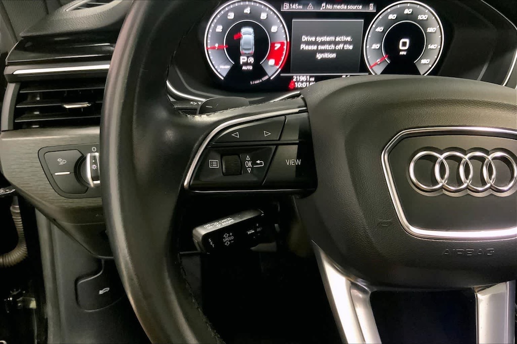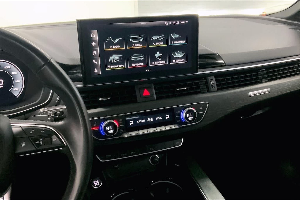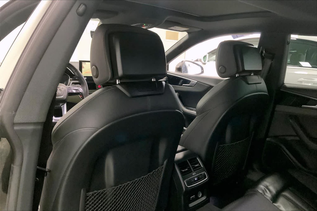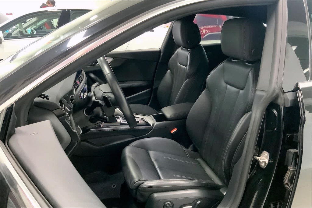 A5 Sportback 45 S line Premium Plus is nicely equipped with Convenience Package (Alarm System w/Motion Sensors, Audi Advanced Key, Audi Side Assist w/Pre Sense Rear, Auto-Dimming Exterior Mirrors, Driver Seat Memory, Heated Steering Wheel, Parking System Plus (Front/Rear Acoustic Sensors), and SiriusXM All Access Service), Premium Plus (2 Rear USB Charge Ports, Adaptive Cruise Control w/Traffic Jam Assist, Audi Active Lane Assist, Hands-On Detection Steering Wheel, Matrix-Design LED Headlights, Power Folding Exterior Mirrors, and Top View Camera System), 10 Speakers, 4-Wheel Disc Brakes, ABS brakes, Air Conditioning, Alloy wheels, AM/FM radio, Anti-whiplash front head restraints, Audi Guard Wheel Lock Kit, Audi smartphone interface with Apple CarPlay, Auto High-beam Headlights, Auto-dimming Rear-View mirror, Automatic temperature control, Bang & Olufsen Sound System w/3D Sound, Brake assist, Bumpers: body-color, Compass, Delay-off headlights, Driver door bin, Driver vanity mirror, Dual front impact airbags, Dual front side impact airbags, Electronic Stability Control, Emergency communication system: Audi connect CARE, Exterior Parking Camera Rear, Four wheel independent suspension, Front anti-roll bar, Front Bucket Seats, Front Center Armrest, Front dual zone A/C, Front fog lights, Front reading lights, Garage door transmitter: HomeLink, Heated door mirrors, Heated Front Bucket Seats, Heated front seats, Illuminated entry, Knee airbag, Leather Seating Surfaces, Leather Shift Knob, Leather steering wheel, Low tire pressure warning, Occupant sensing airbag, Outside temperature display, Overhead airbag, Overhead console, Panic alarm, Passenger door bin, Passenger vanity mirror, Power adjustable front head restraints, Power door mirrors, Power driver seat, Power Liftgate, Power moonroof, Power passenger seat, Power steering, Power windows, Radio data system, Radio: Audi Sound System, Rain sensing wipers, Rear air conditioning, Rear anti-roll bar, Rear reading lights, Rear seat center armrest, Rear window defroster, Remote keyless entry, Rings Audi Beam, Speed control, Speed-sensing steering, Speed-Sensitive Wipers, Split folding rear seat, Steering wheel mounted audio controls, Tachometer, Telescoping steering wheel, Tilt steering wheel, Traction control, Trip computer, Turn signal indicator mirrors, Variably intermittent wipers, and Wheels: 18 Double-Spoke-Star Design.