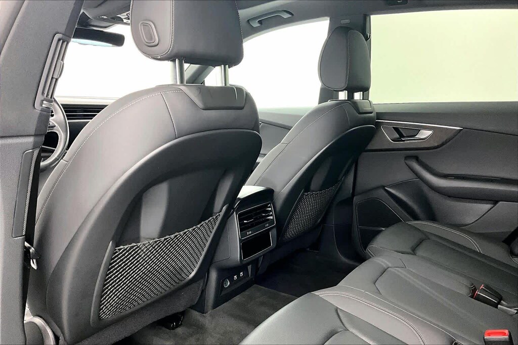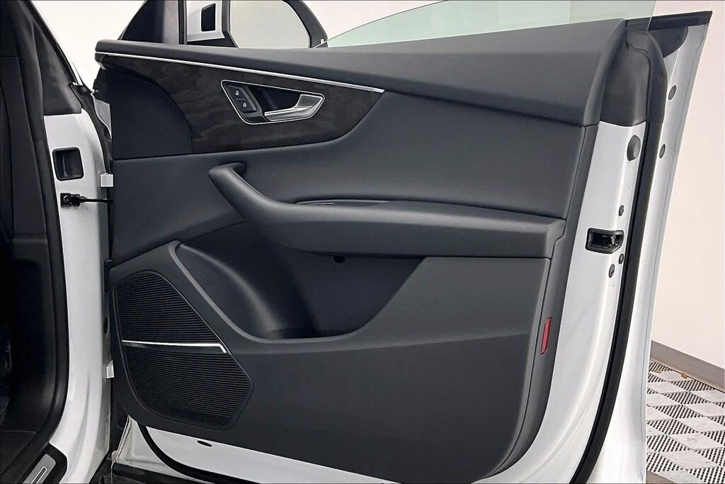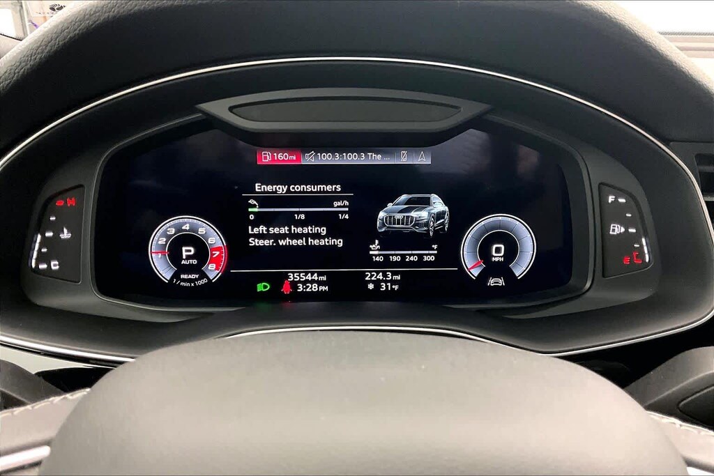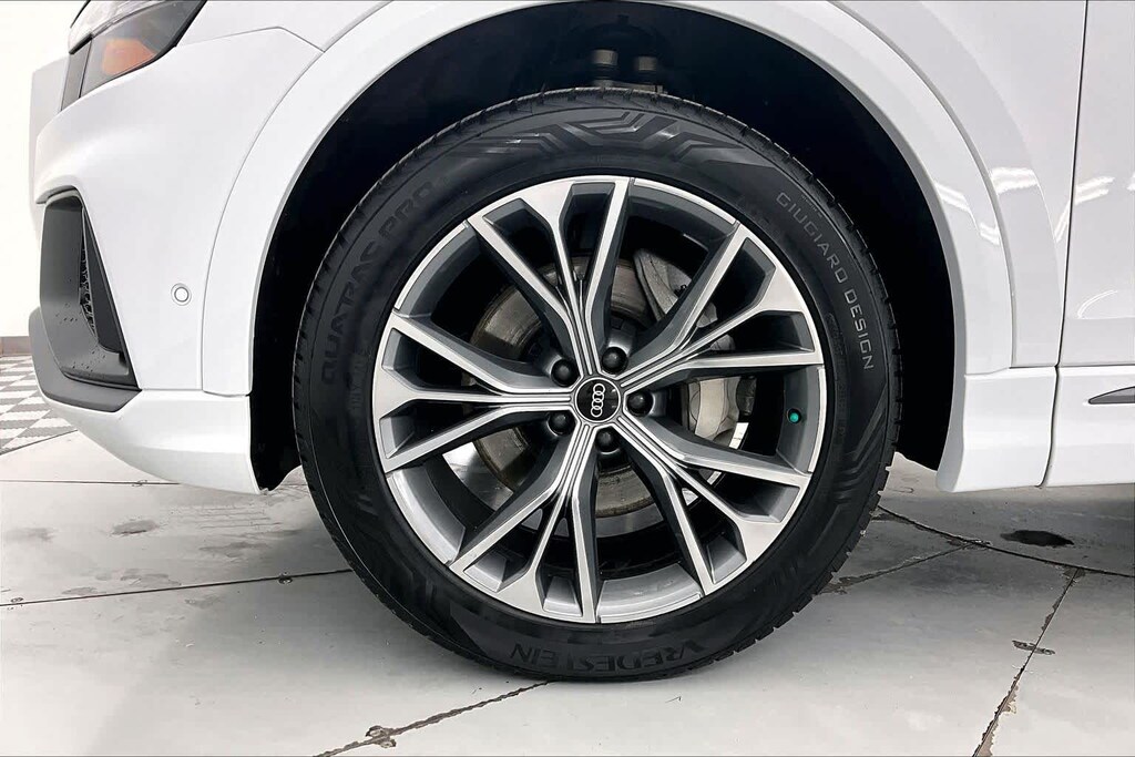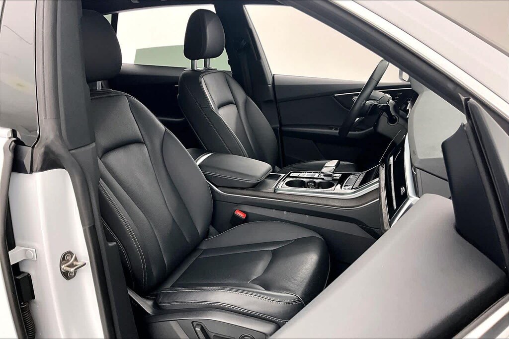 Contour/Ambient LED Interior Lighting Package, Convenience Package (Audi Phone Box w/Wireless Charging, Heated 3-Spoke Multifunction Steering Wheel, Heated Auto-Dimming Power Folding Exterior Mirrors, and Top View Camera System), Premium Plus Package (21 5-Segment-Spoke-Design Wheels, 4-Zone Climate Control, Bang & Olufsen 3D Premium Sound System, Driver & Passenger Front Seats w/Ventilation, and Illuminated Door Sills), S line Style Package (S line Fender Badges, S line Illuminated Door Sills, and Wheels: 21 5-W-Spoke-Design), S-Line Exterior Package (S line Front & Rear Bumpers and S line Side Sills), Q8 55 Premium Plus quattro, Glacier White, Navigation system: Audi MMI Navigation plus with Touch Response, 10 Speakers, 4-Wheel Disc Brakes, ABS brakes, Adaptive suspension, Air Conditioning, Alloy wheels, AM/FM radio: SiriusXM, Audi Guard Protection Kit, Audi Guard Wheel Lock Kit, Audi smartphone interface (Apple CarPlay/Android Auto), Auto High-beam Headlights, Auto-dimming Rear-View mirror, Automatic temperature control, Axle Ratio: TBD, Black Cloth Headliner, Brake assist, Bumpers: body-color, Compass, Delay-off headlights, Driver door bin, Driver vanity mirror, Dual front impact airbags, Dual front side impact airbags, Electronic Stability Control, Emergency communication system: Audi connect CARE, PRIME & PLUS, Exterior Parking Camera Rear, Four wheel independent suspension, Front anti-roll bar, Front Bucket Seats, Front Center Armrest, Front dual zone A/C, Front fog lights, Front reading lights, Fully automatic headlights, Garage door transmitter: HomeLink, Genuine wood door panel insert, Heated door mirrors, Heated Front Bucket Seats, Heated front seats, Illuminated entry, Leather Seating Surfaces, Leather Shift Knob, Leather steering wheel, Low tire pressure warning, Memory seat, Occupant sensing airbag, Outside temperature display, Overhead airbag, Overhead console, Panic alarm, Passenger door bin, Passenger vanity mirror, Power door mirrors, Power driver seat, Power Liftgate, Power moonroof, Power passenger seat, Power steering, Power windows, Radio data system, Radio: Audi MMI Navigation Plus w/Touch Response, Rain sensing wipers, Rear air conditioning, Rear anti-roll bar, Rear fog lights, Rear reading lights, Rear seat center armrest, Rear window defroster, Rear window wiper, Remote keyless entry, Roof rack: rails only, Security system, Speed control, Speed-sensing steering, Split folding rear seat, Spoiler, Steering wheel memory, Steering wheel mounted audio controls, Tachometer, Telescoping steering wheel, Tilt steering wheel, Traction control, Trip computer, Turn signal indicator mirrors, Variably intermittent wipers, and Wheels: 20 5-Arm Design. Local Trade, Q8 55 Premium Plus quattro, Glacier White, 21 5-Segment-Spoke-Design Wheels, 4-Zone Climate Control, Audi Phone Box w/Wireless Charging, Bang & Olufsen 3D Premium Sound System, Contour/Ambient LED Interior Lighting Package, Convenience Package, Driver & Passenger Front Seats w/Ventilation, Heated 3-Spoke Multifunction Steering Wheel, Heated Auto-Dimming Power Folding Exterior Mirrors, Illuminated Door Sills, Navigation system: Audi MMI Navigatio