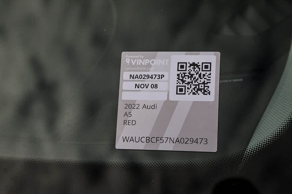 CARFAX One-Owner. Clean CARFAX. Tango Red Metallic 2022 Audi A5 Sportback Premium Plus quattro quattro 7-Speed Automatic S tronic 2.0L 4-Cylinder TFSI Non-Smoker, COMPLETELY DETAILED, Clean CarFax, ONE OWNER, OIL CHANGED, ** BACK UP CAMERA, ** NON - SMOKER, 4D Hatchback, 2.0L 4-Cylinder TFSI, 7-Speed Automatic S tronic, quattro, 2 Rear USB Charge Ports, Adaptive Cruise Control w/Traffic Jam Assist, Alarm System w/Motion Sensors, Anti-whiplash front head restraints, Audi Active Lane Assist, Audi Advanced Key, Audi Phone Box, Audi Side Assist w/Pre Sense Rear, Audi Virtual Cockpit Plus, Auto-Dimming Exterior Mirrors w/Memory, Bang & Olufsen Sound System w/3D Sound, Black Exterior Trim, Black Optic Package, Body Color Door Handles, Convenience Package, Delay-off headlights, Driver Seat Memory, Dual front side impact airbags, Gray Oak Natural Wood Inlays, Hands-On Detection Steering Wheel, Heated Steering Wheel, Knee airbag, Leather Seating Surfaces, Leatherette Covered Center Console & Door Armrests, Matrix-Design LED Headlights, Parking System Plus (Front/Rear Acoustic Sensors), Power Folding Exterior Mirrors, Power windows, Premium Plus, Rear anti-roll bar, SiriusXM All Access Service, Tilt steering wheel, Top View Camera System, Wheels: 19 Multi Spoke Design Bi-Color Finish.