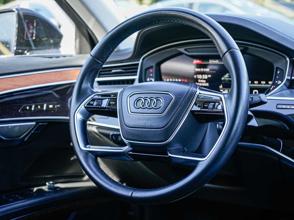 Black w/Valetta Leather Seat Upholstery or Valcona Leather Seat Upholstery, 20 10-Parallel-Spoke-Design Wheels, Alu-Optic Buttons, Audi Adaptive Cruise Assist w/Lane Guidance, Audi Side Assist, Contour/Ambient LED Interior Lighting Package, Executive Package, Heated Steering Wheel, Intersection Assist, Traffic Sign Recognition.