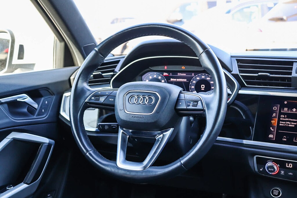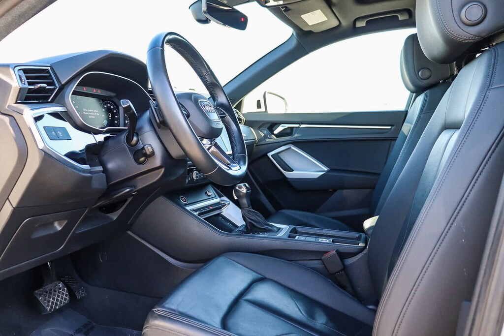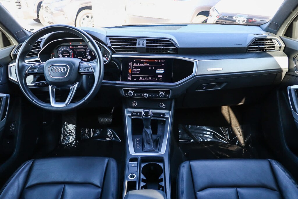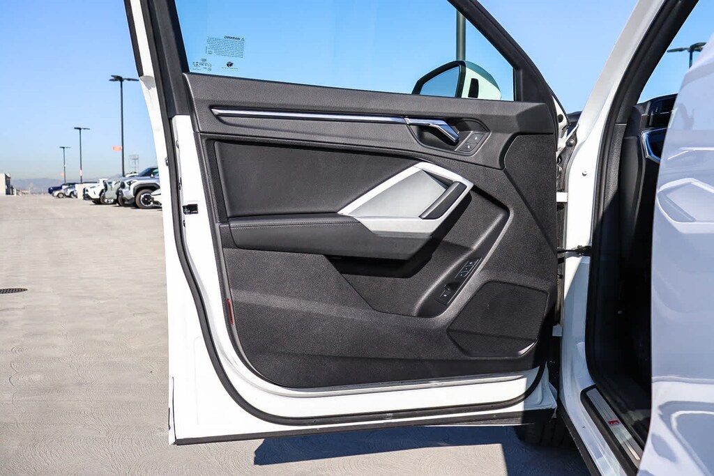 MULTI POINT SAFETY AND MECHANICAL INSPECTION PERFORMED BY CERTIFIED TECHNICIAN, PERFORMED SERVICE, INTERIOR and EXTERIOR DETAILED FOR DELIVERY, 10 Speakers, 3.533 Axle Ratio, 4-Wheel Disc Brakes, ABS brakes, Air Conditioning, Alloy wheels, AM/FM radio, Audi smartphone interface (Apple CarPlay/Android Auto), Auto High-beam Headlights, Automatic temperature control, Brake assist, Bumpers: body-color, Delay-off headlights, Driver door bin, Driver vanity mirror, Dual front impact airbags, Dual front side impact airbags, Electronic Stability Control, Emergency communication system: Audi connect CARE, Exterior Parking Camera Rear, Four wheel independent suspension, Front anti-roll bar, Front Bucket Seats, Front Center Armrest, Front dual zone A/C, Front fog lights, Front reading lights, Fully automatic headlights, Heated door mirrors, Heated Front Bucket Seats, Heated front seats, Illuminated entry, Knee airbag, Leather Seating Surfaces, Leather Shift Knob, Leather steering wheel, Low tire pressure warning, Occupant sensing airbag, Outside temperature display, Overhead airbag, Overhead console, Panic alarm, Passenger door bin, Passenger vanity mirror, Power door mirrors, Power driver seat, Power Liftgate, Power moonroof: Panoramic, Power passenger seat, Power steering, Power windows, Radio data system, Radio: Audi Sound System, Rain sensing wipers, Rear air conditioning, Rear anti-roll bar, Rear fog lights, Rear reading lights, Rear seat center armrest, Rear window defroster, Rear window wiper, Remote keyless entry, Speed control, Speed-sensing steering, Split folding rear seat, Spoiler, Steering wheel mounted audio controls, Tachometer, Telescoping steering wheel, Tilt steering wheel, Traction control, Trip computer, Turn signal indicator mirrors, Variably intermittent wipers, Wheels: 18 5-V-Spoke-S Design. Ibis White 2022 Audi Q3 Premium Plus S Line quattro quattro 8-Speed Automatic with Tiptronic 2.0L 4-Cylinder TFSI