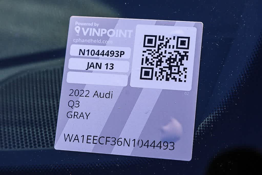 CARFAX One-Owner. Clean CARFAX. Gray 2022 Audi Q3 Premium Plus S Line quattro quattro 8-Speed Automatic with Tiptronic 2.0L 4-Cylinder TFSI Non-Smoker, COMPLETELY DETAILED, Clean CarFax, ONE OWNER, OIL CHANGED, ** BACK UP CAMERA, Q3 Premium Plus S Line quattro, 4D Sport Utility, 2.0L 4-Cylinder TFSI, 8-Speed Automatic with Tiptronic, quattro, 12.3 Audi Virtual Cockpit Screen, 20 Wheel Package, Audi Connect PRIME & PLUS, Auto High-beam Headlights, Black Optic Exterior Kit & Roof Rails, Black Optic Sport Package, Emergency communication system: Audi connect CARE, Front dual zone A/C, MMI Navigation Plus, MMI Touch Display, Overhead airbag, Power windows, S Line Sport Seats, Sonos Premium Sound System w/3D Sound, Speed-sensing steering, Technology Package, Traffic Sign Recognition, Wheels: 19 5-Double-Arm Design Bi-Color Finish, Wheels: 20 5-Double-Spoke Module Design.