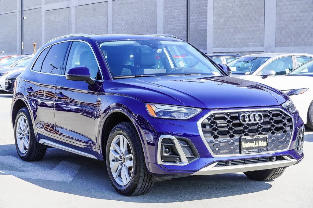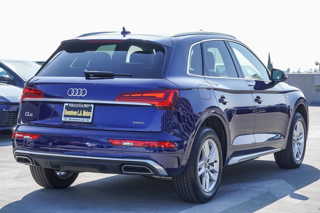 WELCOME TO TOYOTA OF DOWNTOWN LA... CARFAX One-Owner. 2022 Audi Q5 45 S line Premium quattro Navarra Blue Metallic quattro 7-Speed Automatic S tronic 2.0L Turbocharged Black Leather, 10 Speakers, AM/FM radio, Audi Advanced Key, Auto-Dimming Power Folding Exterior Mirrors, Convenience Package, Driver Seat Memory, Exterior Parking Camera Rear, Heated Steering Wheel, Panoramic Sunroof, Power driver seat, Power Liftgate, Power steering, Power windows, Radio data system, Radio: Audi Sound System, Remote keyless entry, SiriusXM All Access Service, Spoiler, Steering wheel mounted audio controls, Wheels: 18 5-Arm-Star Design. Odometer is 5756 miles below market average! 23/28 City/Highway MPG Clean CARFAX.