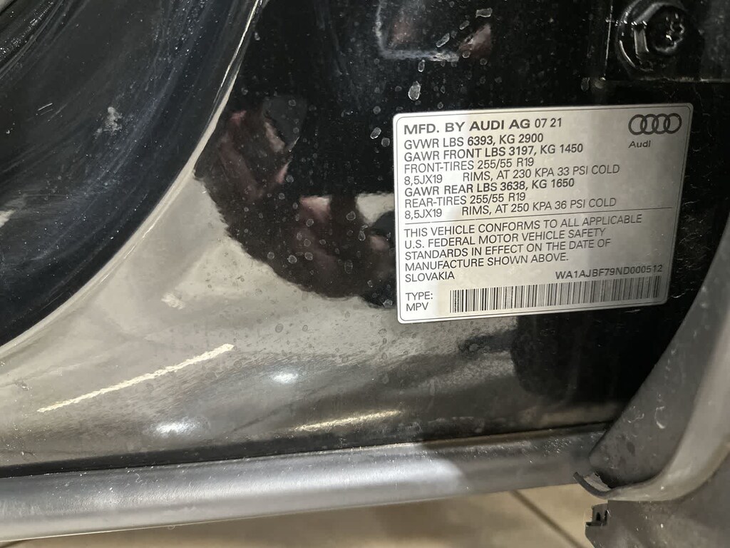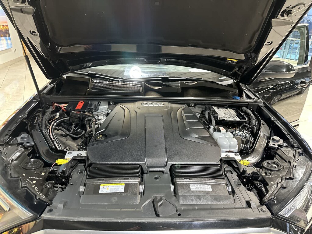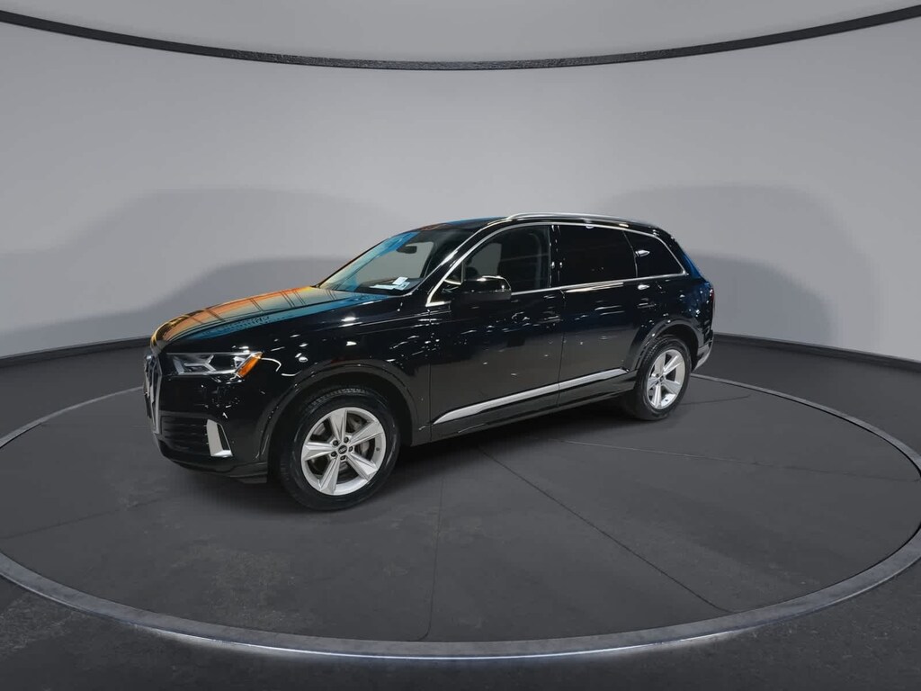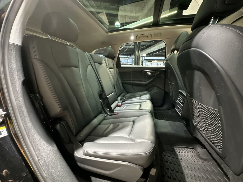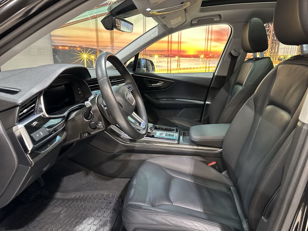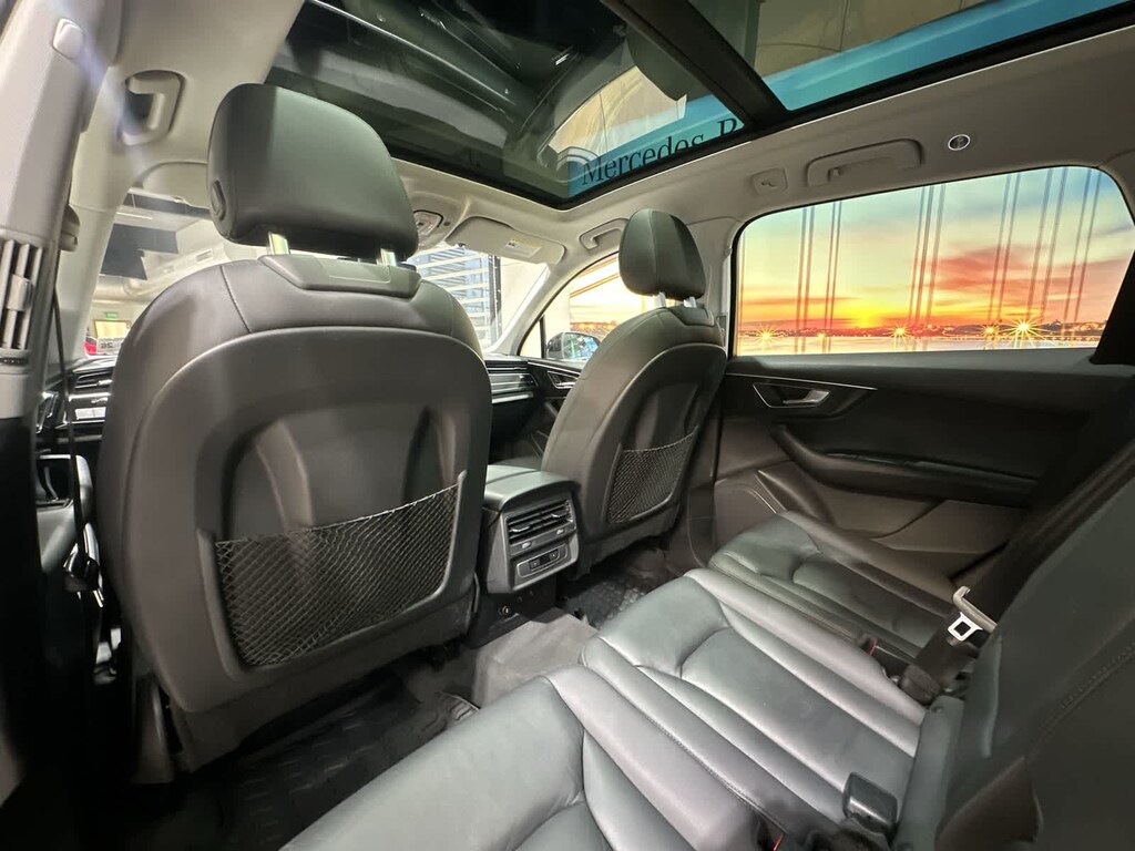 2022 Audi Q7 45 Premium quattro Mythos Black Metallic 10 Speakers, 3rd row seats: bench, AM/FM radio: SiriusXM, Audi Beam Rings, Exterior Parking Camera Rear, Heated front seats, Navigation system: Audi MMI Navigation plus with Touch Response, Power driver seat, Power Liftgate, Power moonroof: Panoramic, Power passenger seat, Radio data system, Radio: Audi Sound System, Reclining 3rd row seat, Wheels: 19 5-Arm-Star Design.