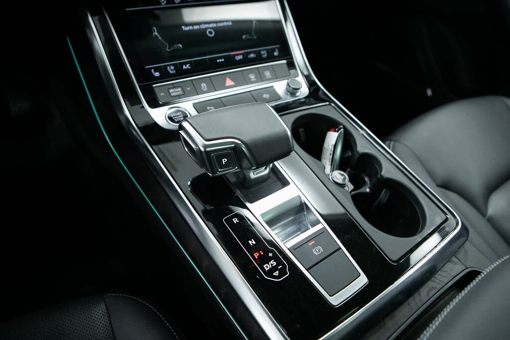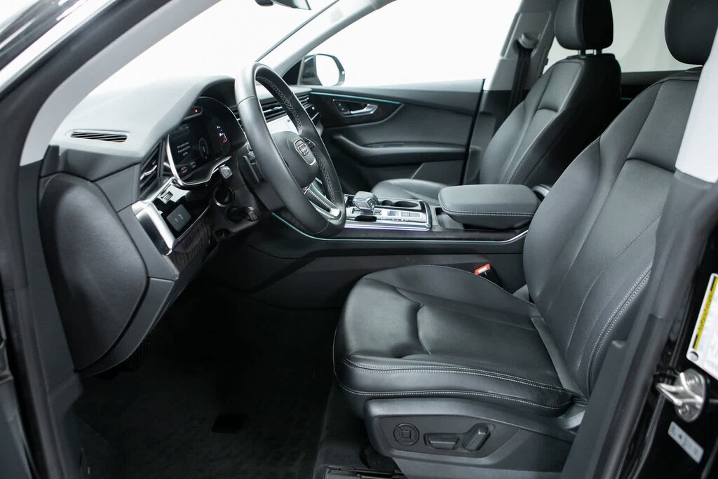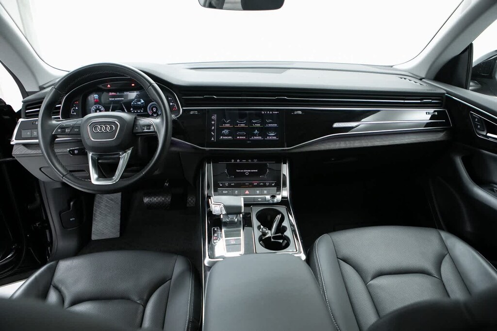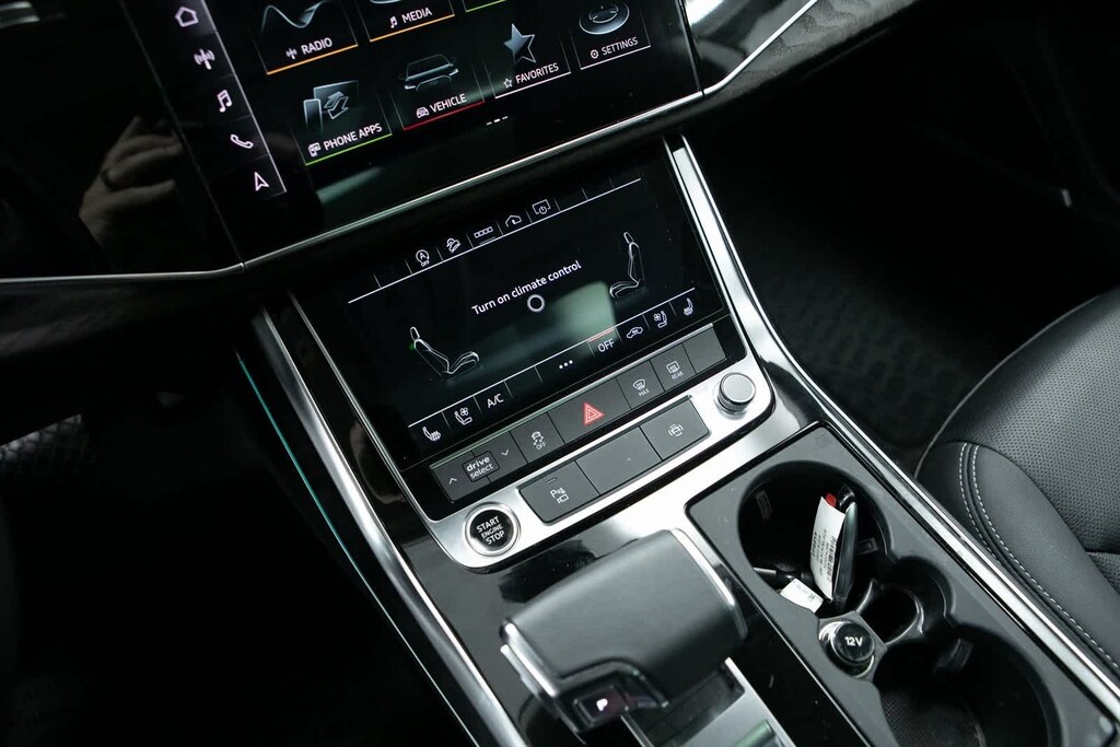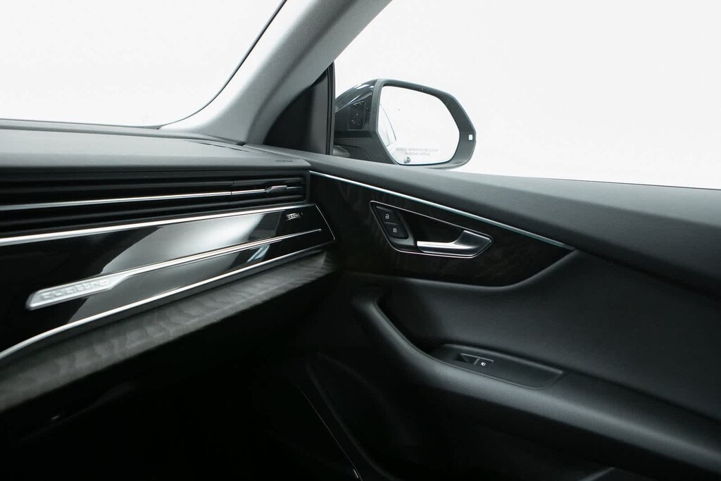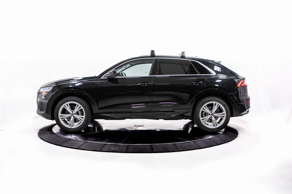 CARFAX One-Owner. 10 Speakers, 21 5-Segment-Spoke-Design Wheels, 4-Wheel Disc Brakes, ABS brakes, Adaptive suspension, Air Conditioning, Alloy wheels, AM/FM radio: SiriusXM, Audi smartphone interface (Apple CarPlay/Android Auto), Auto High-beam Headlights, Auto-dimming door mirrors, Auto-dimming Rear-View mirror, Automatic temperature control, Axle Ratio: TBD, Brake assist, Bumpers: body-color, Compass, Delay-off headlights, Driver door bin, Driver vanity mirror, Dual front impact airbags, Dual front side impact airbags, Electronic Stability Control, Emergency communication system: Audi connect CARE, PRIME & PLUS, Exterior Parking Camera Rear, Four wheel independent suspension, Front anti-roll bar, Front Bucket Seats, Front Center Armrest, Front dual zone A/C, Front fog lights, Front reading lights, Fully automatic headlights, Garage door transmitter: HomeLink, Genuine wood door panel insert, Heated door mirrors, Heated Front Bucket Seats, Heated front seats, Illuminated entry, Leather Seating Surfaces, Leather Shift Knob, Leather steering wheel, Low tire pressure warning, Memory seat, Navigation system: Audi MMI Navigation plus with Touch Response, Occupant sensing airbag, Outside temperature display, Overhead airbag, Overhead console, Panic alarm, Passenger door bin, Passenger vanity mirror, Power door mirrors, Power driver seat, Power Liftgate, Power moonroof: Panoramic, Power passenger seat, Power steering, Power windows, Radio data system, Radio: MMI Nav Plus w/MMI Touch Response, Rain sensing wipers, Rear air conditioning, Rear anti-roll bar, Rear fog lights, Rear reading lights, Rear seat center armrest, Rear side impact airbag, Rear window defroster, Rear window wiper, Remote keyless entry, Roof rack: rails only, Security system, Speed control, Speed-sensing steering, Split folding rear seat, Spoiler, Steering wheel memory, Steering wheel mounted audio controls, Tachometer, Telescoping steering wheel, Tilt steering wheel, Traction control, Trip computer, Turn signal indicator mirrors, Variably intermittent wipers. Mythos Black Metallic 2022 Audi Q8 55 Premium Plus quattro 55 Premium Plus quattro quattro 8-Speed Automatic with Tiptronic 3.0L V6 Turbocharged DOHC 24V LEV3-ULEV70 335hp