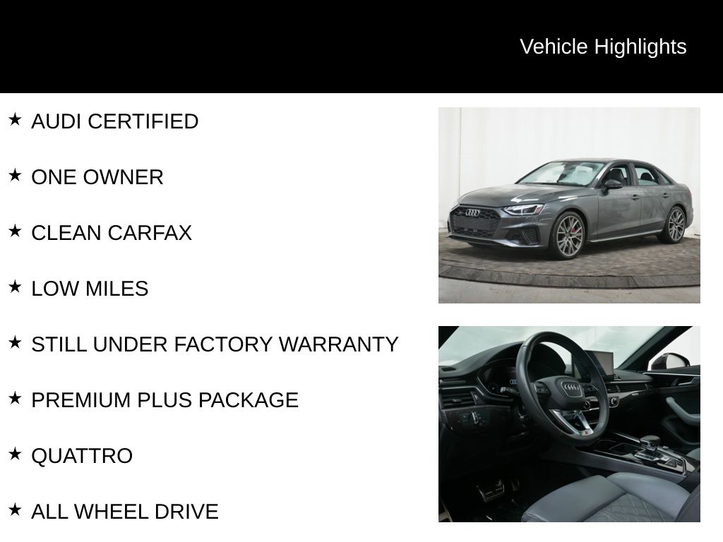 This 2022 Audi S4 3.0T Premium Plus quattro is an exceptional choice for the discerning driver. With its striking Gray exterior and premium features, this vehicle is a true testament to Audi's commitment to engineering excellence.