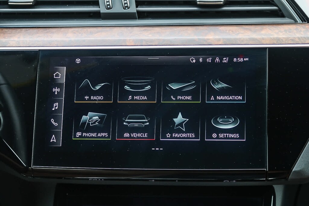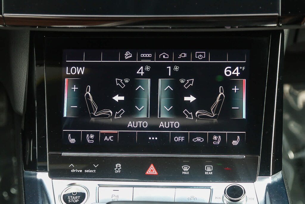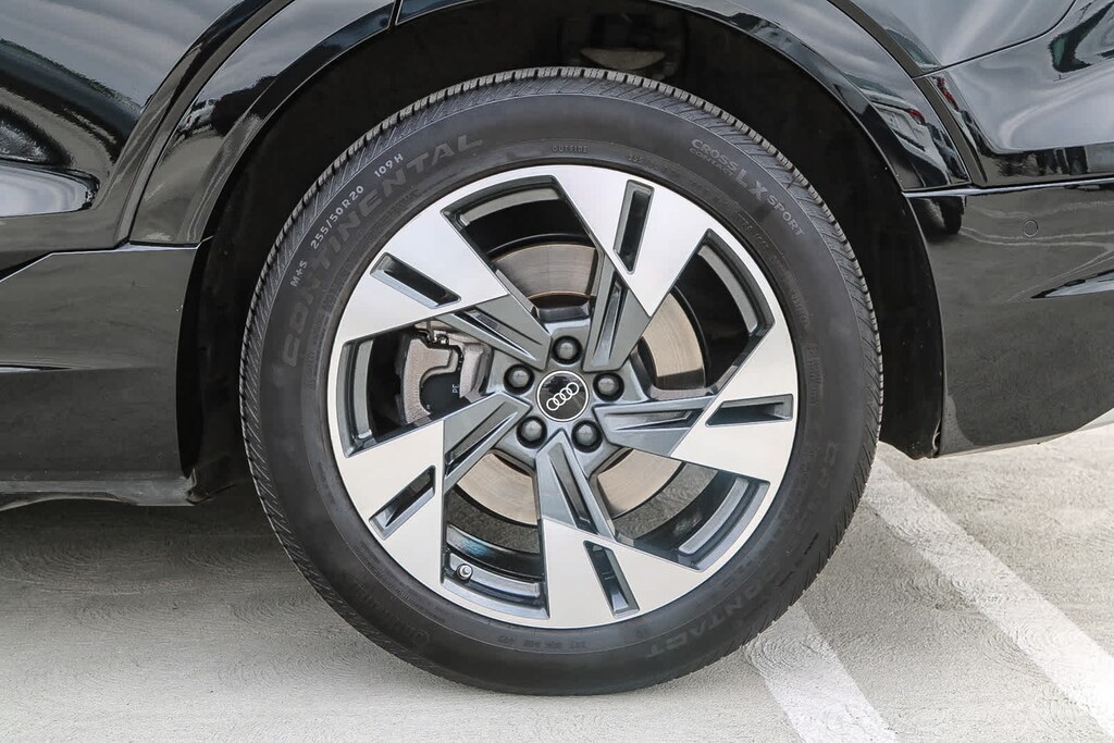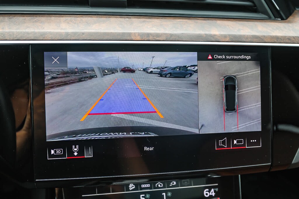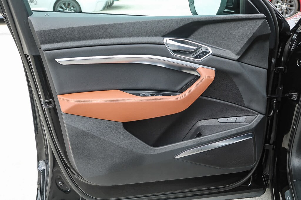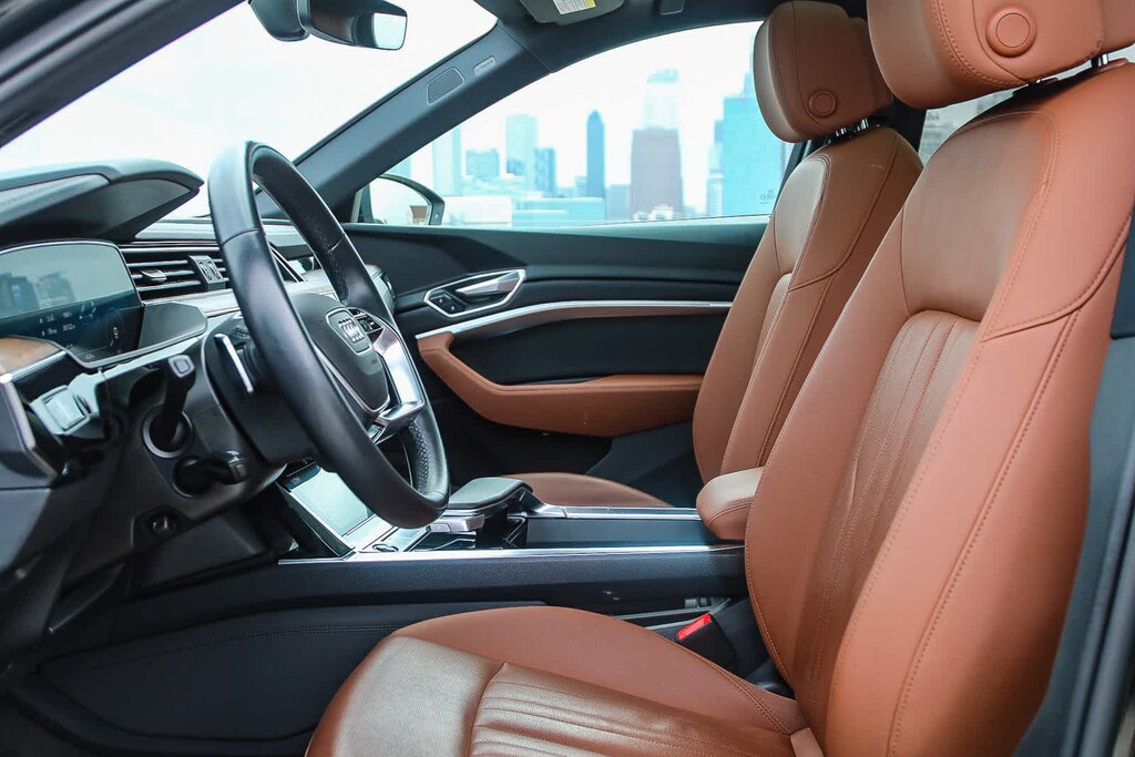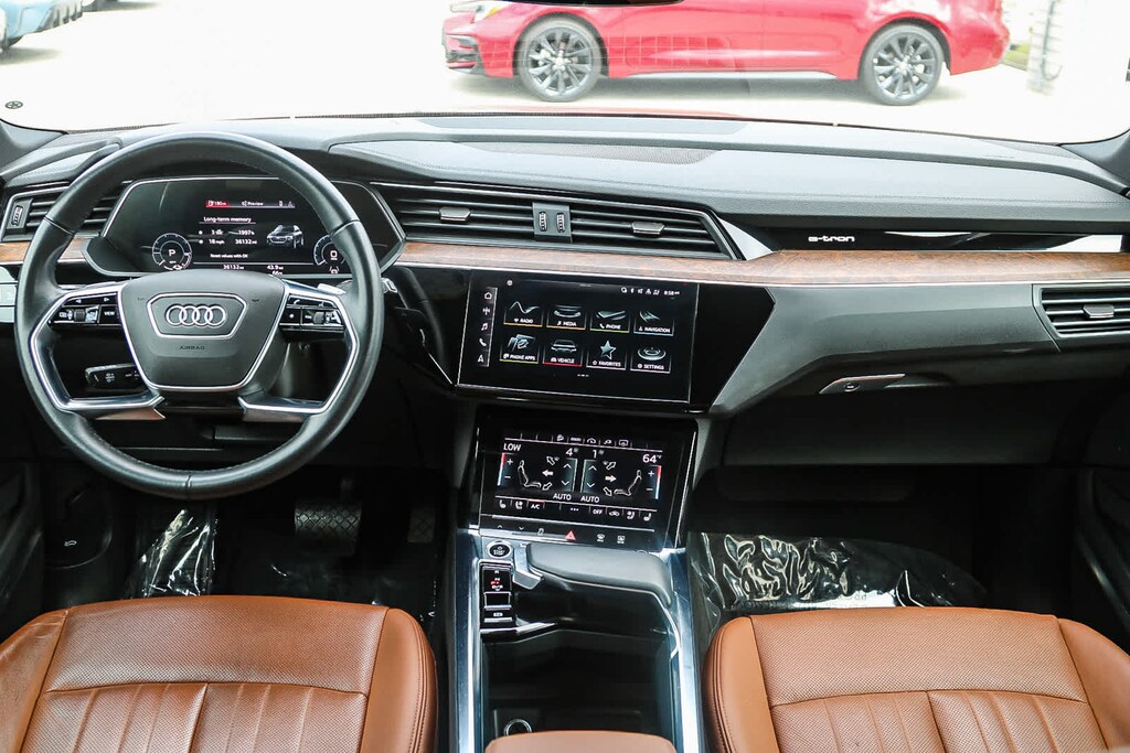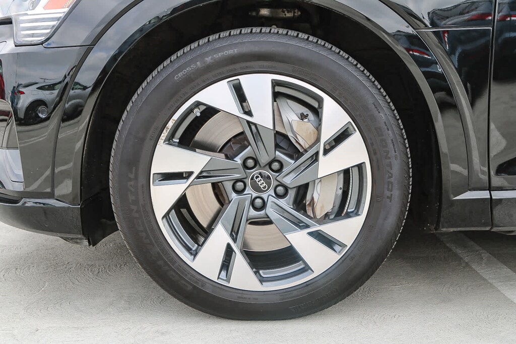 MULTI POINT SAFETY AND MECHANICAL INSPECTION PERFORMED BY CERTIFIED TECHNICIAN, PERFORMED SERVICE, INTERIOR and EXTERIOR DETAILED FOR DELIVERY, 10 Speakers, 2nd Charge Port (AC Passenger Side), 4-Wheel Disc Brakes, 9.08 Axle Ratio, ABS brakes, Adaptive Cruise Assist w/Lane Guidance, Adaptive suspension, Air Conditioning, Alloy wheels, Ambient Interior Lighting Package, Audi Phone Box Credit, Audi Phone Box w/Wireless Charging, Audi smartphone interface (Apple CarPlay/Android Auto), Auto High-beam Headlights, Auto-dimming door mirrors, Auto-dimming Rear-View mirror, Auto-leveling suspension, Automatic temperature control, Bang & Olufsen 3D Premium Sound System, Brake assist, Bumpers: body-color, Compass, Delay-off headlights, Driver door bin, Driver vanity mirror, Dual front impact airbags, Dual front side impact airbags, Electronic Stability Control, Emergency communication system: Audi connect CARE, PRIME & PLUS, Exterior Parking Camera Rear, Four wheel independent suspension, Front anti-roll bar, Front Bucket Seats, Front Center Armrest, Front dual zone A/C, Front fog lights, Front reading lights, Fully automatic headlights, Garage door transmitter: HomeLink, Heated 8-Way Power Front Seats, Heated door mirrors, Heated front seats, Heated Rear Seats, Heated steering wheel, Illuminated entry, Illuminated Front & Rear Aluminum Door Sills, Leather Seating Surfaces, Low tire pressure warning, Matrix-Design LED Headlights, Memory seat, Navigation system: Audi MMI Navigation plus with Touch Response, Occupant sensing airbag, Outside temperature display, Overhead airbag, Overhead console, Panic alarm, Passenger door bin, Passenger vanity mirror, Power door mirrors, Power driver seat, Power Liftgate, Power moonroof: Panoramic, Power passenger seat, Power steering, Power windows, Premium Plus Package, Radio data system, Radio: Audi Sound System, Rear air conditioning, Rear anti-roll bar, Rear dual zone A/C, Rear fog lights, Rear reading lights, Rear seat center armrest, Rear window defroster, Rear window wiper, Remote keyless entry, Roof rack: rails only, Security system, Speed control, Speed-sensing steering, Split folding rear seat, Spoiler, Steering wheel memory, Steering wheel mounted audio controls, Telescoping steering wheel, Tilt steering wheel, Top View Camera System, Traction control, Traffic Sign Recognition, Trip computer, Turn signal indicator mirrors, Variably intermittent wipers, Ventilated Front Seats, Wheels: 20 5-Arm-Dynamic Design Bi-Color Finish. Black Metallic 2022 Audi e-tron Premium Plus quattro quattro Single-Speed Automatic Electric Motor