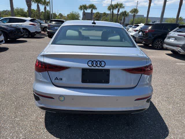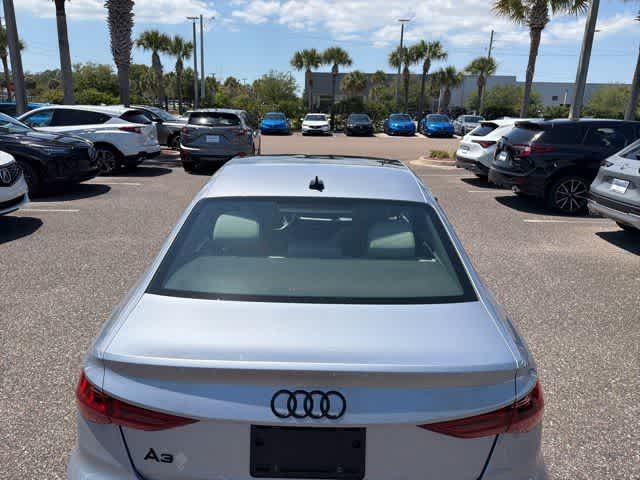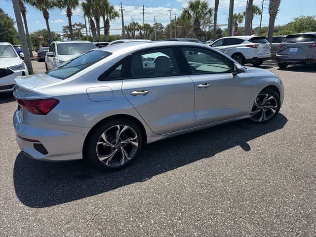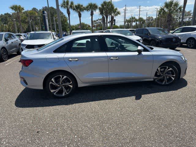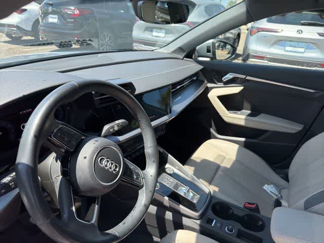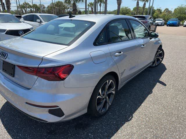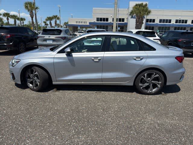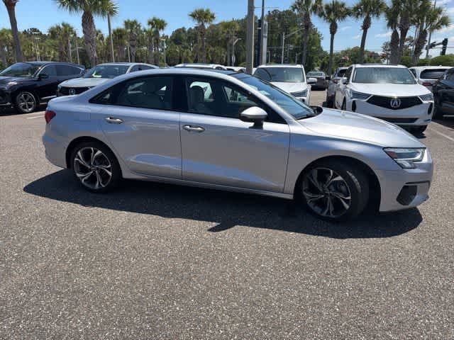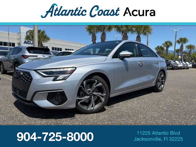 This 2023 Audi A3 40 Premium in Silver Metallic, features Black Optic Sport Package (Black Exterior Trim, Sport Suspension (-15 mm), and Wheels: 18 5-Y-Spoke Design), Convenience Package (Alarm System w/Motion Sensor, Audi Advanced Key, Audi Side Assist, Auto-Dimming Interior Mirror w/Compass, Auto-Dimming Power Folding Exterior Mirrors, Memory for Drivers Seat, Park Assist, SiriusXM w/360L, and Wireless Phone Charging Pad), 4-Wheel Disc Brakes, 6 Speakers, ABS brakes, Air Conditioning, Alloy wheels, AM/FM radio, Auto High-beam Headlights, Automatic temperature control, Black Audi Rings & Badges, Brake assist, Bumpers: body-color, Delay-off headlights, Driver door bin, Driver vanity mirror, Dual front impact airbags, Dual front side impact airbags, Electronic Stability Control, Emergency communication system, Exterior Parking Camera Rear, Four wheel independent suspension, Front anti-roll bar, Front Bucket Seats, Front Center Armrest, Front dual zone A/C, Front reading lights, Fully automatic headlights, Heated door mirrors, Heated Front Bucket Seats, Heated front seats, Illuminated entry, Knee airbag, Leather Seating Surfaces, Leather steering wheel, Low tire pressure warning, Occupant sensing airbag, Outside temperature display, Overhead airbag, Overhead console, Panic alarm, Passenger door bin, Passenger vanity mirror, Power door mirrors, Power driver seat, Power moonroof, Power passenger seat, Power steering, Power windows, Radio data system, Radio: Audi Sound System, Rain sensing wipers, Rear air conditioning, Rear anti-roll bar, Rear fog lights, Rear reading lights, Rear seat center armrest, Rear side impact airbag, Rear window defroster, Remote keyless entry, Speed control, Speed-sensing steering, Speed-Sensitive Wipers, Split folding rear seat, Steering wheel mounted audio controls, Tachometer, Telescoping steering wheel, Tilt steering wheel, Traction control, Trip computer, Turn signal indicator mirrors, Variably intermittent wipers, and Wheels: 17 5-Arm Design: