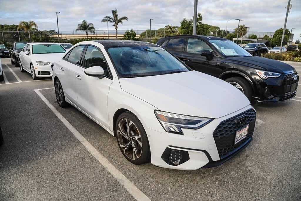 New Price! CARFAX One-Owner. Ibis White 2023 Audi A3 40 Premium FrontTrak FrontTrak 7-Speed Automatic S tronic 2.0L 4-Cylinder TFSI Non-Smoker, COMPLETELY DETAILED, OIL CHANGED, ** BACK UP CAMERA, A3 40 Premium FrontTrak, 4D Sedan, 2.0L 4-Cylinder TFSI, 7-Speed Automatic S tronic, FrontTrak, Alarm System w/Motion Sensor, Audi Advanced Key, Audi Side Assist, Auto-Dimming Interior Mirror w/Compass, Auto-Dimming Power Folding Exterior Mirrors, Black Exterior Trim, Black Optic Sport Package, Convenience Package, Driver vanity mirror, Dual front impact airbags, Front anti-roll bar, Fully automatic headlights, Memory for Drivers Seat, Occupant sensing airbag, Park Assist, SiriusXM w/360L, Sport Suspension (-15 mm), Tilt steering wheel, Wheels: 18 5-Y-Spoke Design, Wireless Phone Charging Pad.
