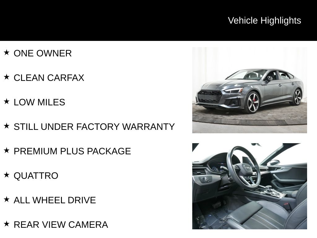 This meticulously maintained 2023 Audi A5 Sportback 45 S line Premium Plus quattro is a true testament to Audi's commitment to engineering excellence. With its sleek and dynamic design, advanced technology, and exceptional performance, this vehicle is the perfect blend of style, comfort, and capability.