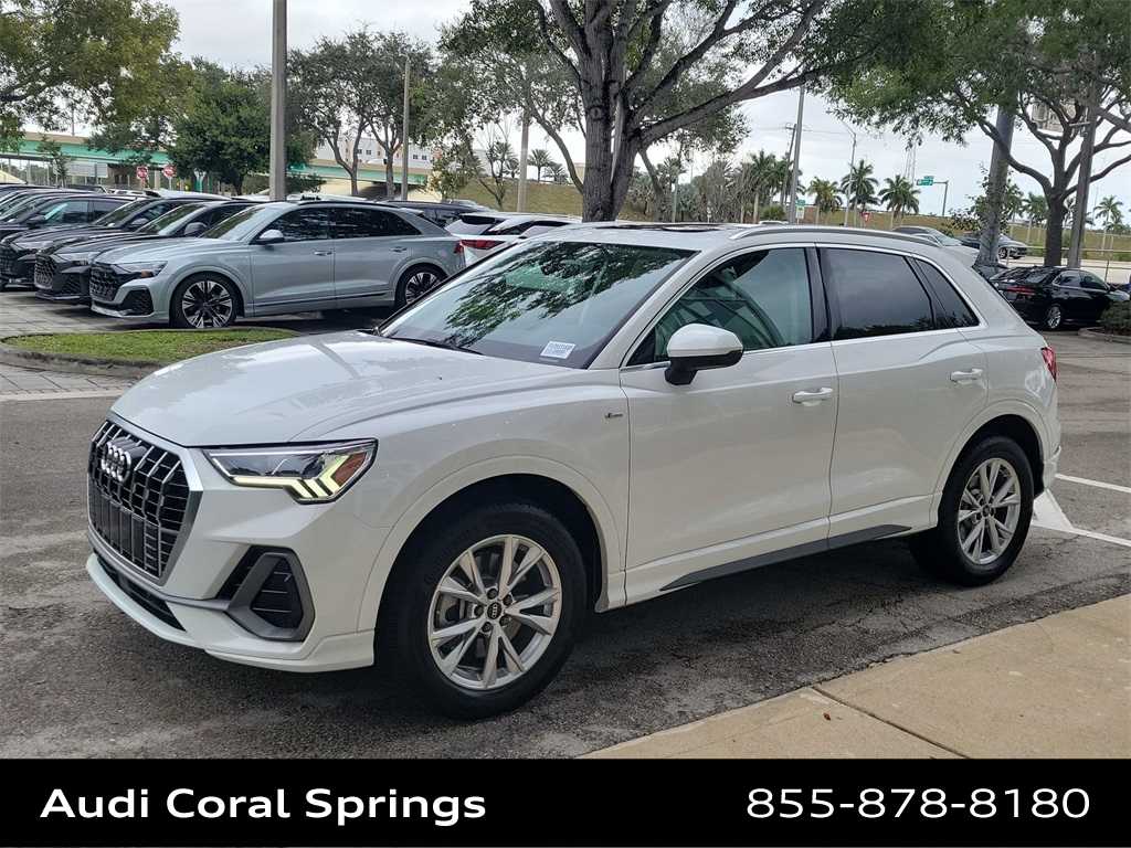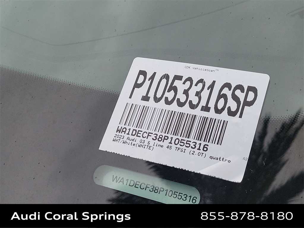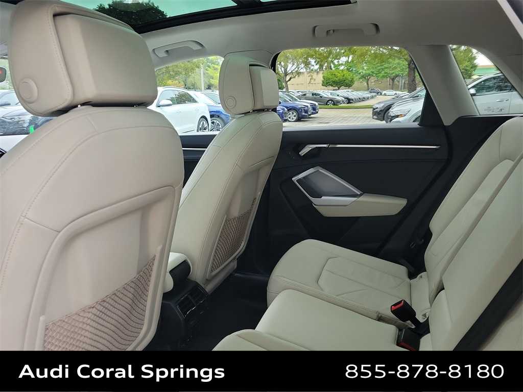 2023 Audi Q3 Premium S Line quattro Q3 Premium S Line quattro, Ibis White, Pearl Beige w/Leather Seating Surfaces, Alarm w/Motion Sensor, Audi Advanced Key, Auto-Dimming Power-Folding Exterior Mirrors, Convenience Package, Driver Seat Memory, Frameless Auto-Dimming Interior Mirror w/Compass, LED Interior Lighting Package, SiriusXM w/360L.