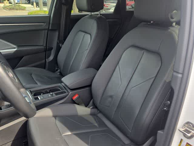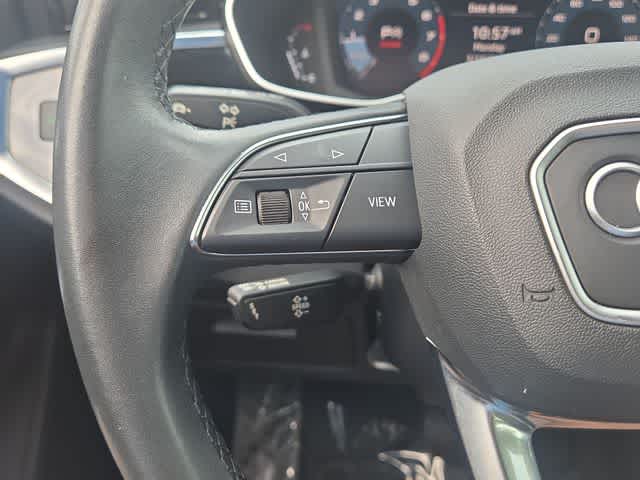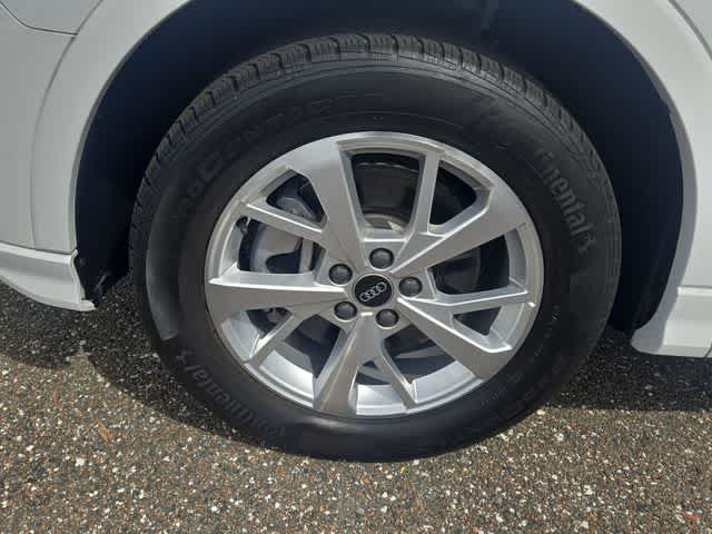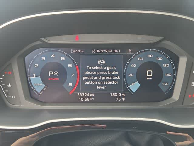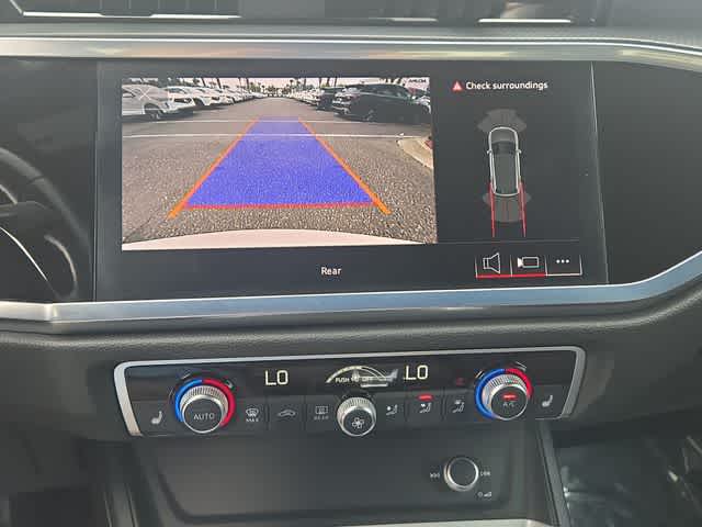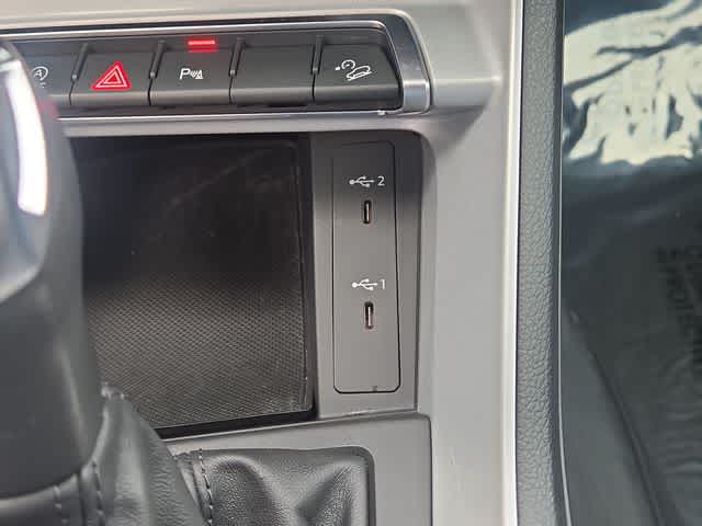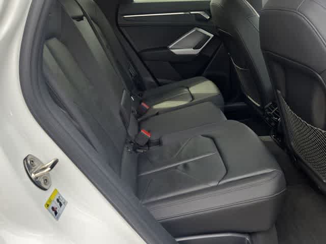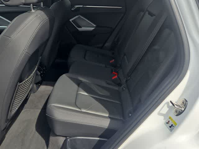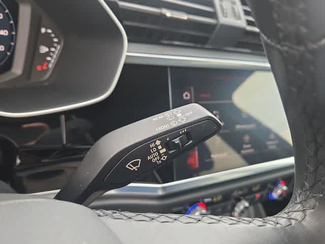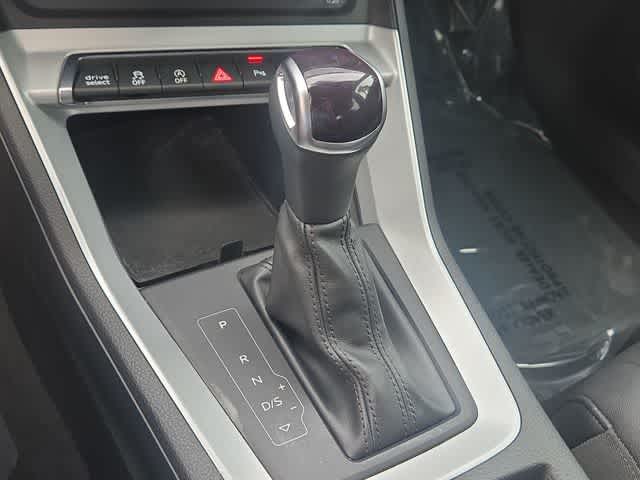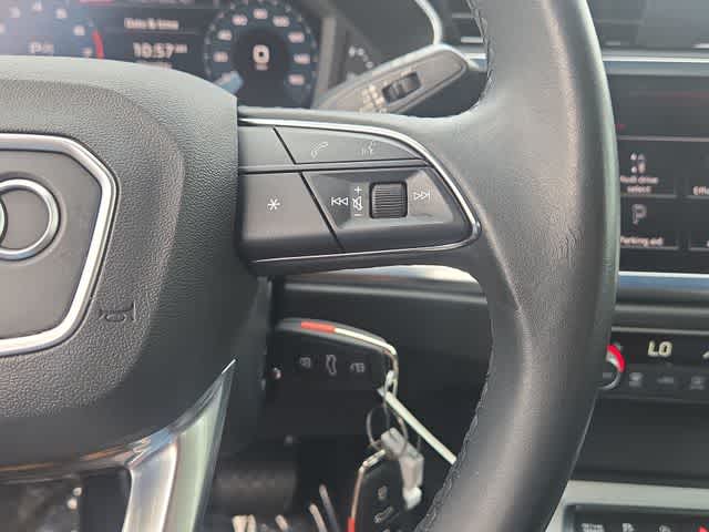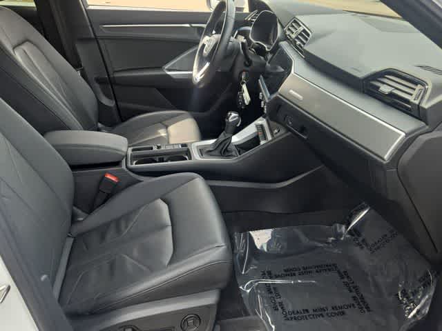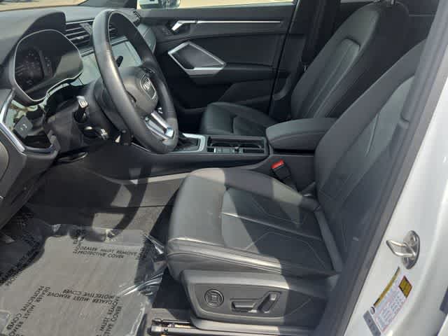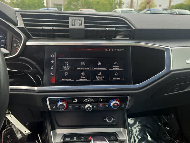 This 2023 Audi Q3 Premium in White, features 10 Speakers, 3.33 Axle Ratio, 4-Wheel Disc Brakes, ABS brakes, Air Conditioning, Alloy wheels, AM/FM radio, Audi smartphone interface (Apple CarPlay/Android Auto), Auto High-beam Headlights, Automatic temperature control, Brake assist, Bumpers: body-color, Delay-off headlights, Driver door bin, Driver vanity mirror, Dual front impact airbags, Dual front side impact airbags, Electronic Stability Control, Emergency communication system: Audi connect CARE, Exterior Parking Camera Rear, Four wheel independent suspension, Front anti-roll bar, Front Bucket Seats, Front Center Armrest, Front dual zone A/C, Front fog lights, Front reading lights, Fully automatic headlights, Heated door mirrors, Heated Front Bucket Seats, Heated front seats, Illuminated entry, Knee airbag, Leather Seating Surfaces, Leather Shift Knob, Leather steering wheel, Low tire pressure warning, Occupant sensing airbag, Outside temperature display, Overhead airbag, Overhead console, Panic alarm, Passenger door bin, Passenger vanity mirror, Power door mirrors, Power driver seat, Power Liftgate, Power moonroof: Panoramic, Power passenger seat, Power steering, Power windows, Radio data system, Radio: Audi Sound System, Rain sensing wipers, Rear air conditioning, Rear anti-roll bar, Rear fog lights, Rear reading lights, Rear seat center armrest, Rear window defroster, Rear window wiper, Remote keyless entry, Speed control, Speed-sensing steering, Split folding rear seat, Spoiler, Steering wheel mounted audio controls, Tachometer, Telescoping steering wheel, Tilt steering wheel, Traction control, Trip computer, Turn signal indicator mirrors, Variably intermittent wipers, and Wheels: 18 5-Y-Spoke Design: