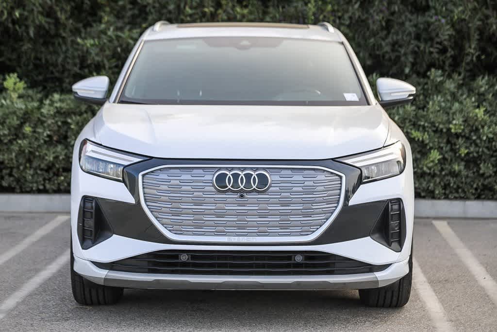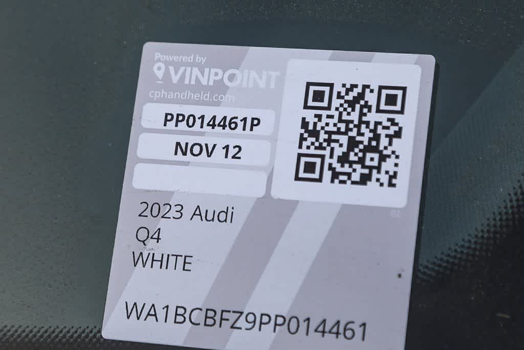 CARFAX One-Owner. Glacier White 2023 Audi Q4 e-tron Premium Plus RWD Single-Speed Automatic Electric Motor Non-Smoker, Privacy Glass, COMPLETELY DETAILED, ** BACK UP CAMERA, ** SUNROOF, Q4 e-tron Premium Plus, 4D Sport Utility, Electric Motor, Single-Speed Automatic, Alarm System w/Motion Sensor, Audi Advanced Key, Auto-Dimming Interior Mirror w/Compass, Auto-Dimming Power Folding Exterior Mirrors, Convenience Package, Dual-Pane Acoustic Glass for Front Side Windows, Front dual zone A/C, Hands-Free Power Tailgate, Leather steering wheel, Low tire pressure warning, Memory for Drivers Seat, Power Front Passenger Seat, Projection Light in Exterior Mirrors, Remote keyless entry, SiriusXM w/360L, Telescoping steering wheel, Wireless Phone Charging Pad.