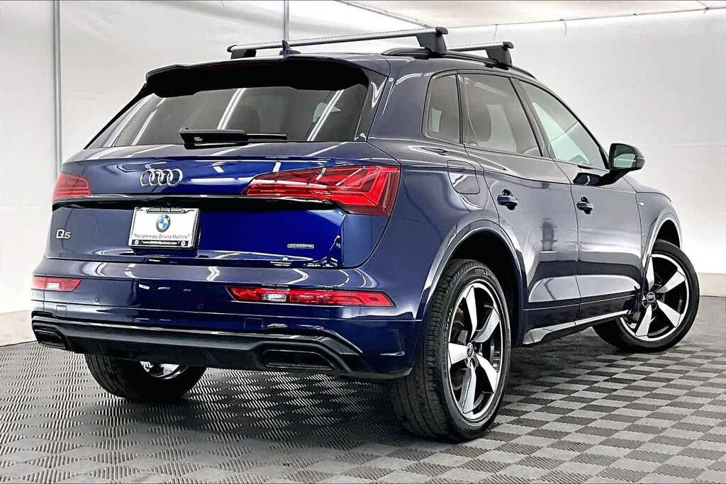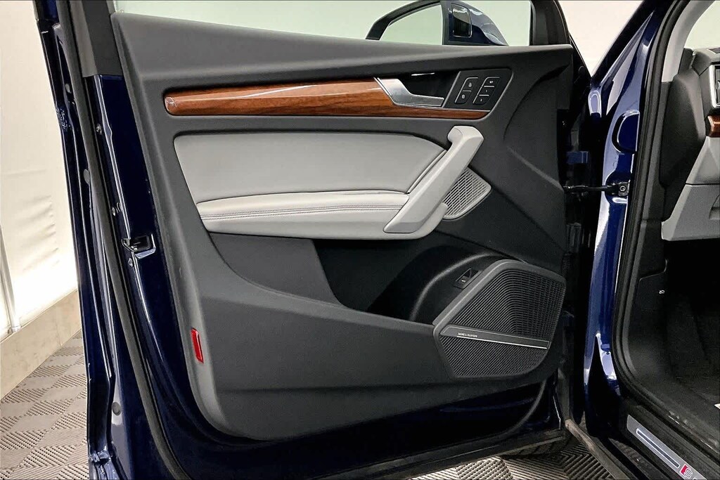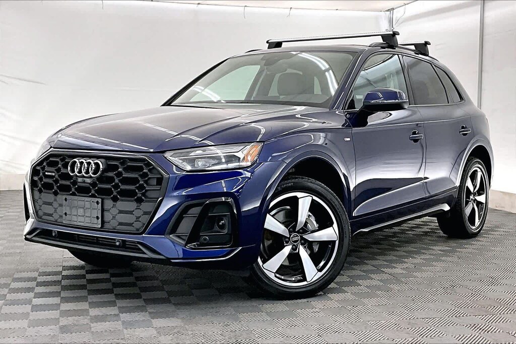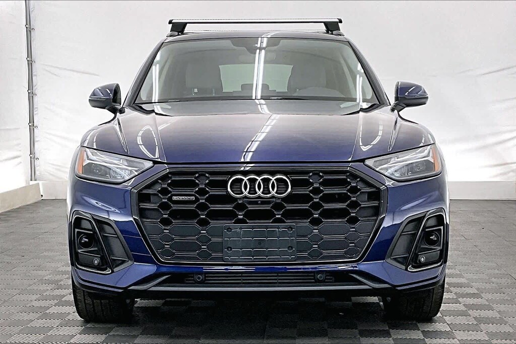 Clean CARFAX. Blue Metallic 2023 Audi Q5 45 S line Premium quattro quattro 7-Speed Automatic S tronic 2.0L Turbocharged Gray Leather, 10 Speakers, 4-Wheel Disc Brakes, 5.302 Axle Ratio, ABS brakes, Air Conditioning, All-Weather Floor Mats, Alloy wheels, AM/FM radio, Audi Active Lane Assist, Audi Advanced Key, Audi Beam-Rings, Audi Guard Protection Kit, Audi Virtual Cockpit Plus, Auto-Dimming Power Folding Exterior Mirrors, Auto-dimming Rear-View mirror, Automatic temperature control, Bang & Olufsen Sound System w/3D Sound, Black Exterior Trim, Black Optic Package, Black Roof Rails, Brake assist, Bumpers: body-color, Cargo Mat, Compass, Convenience Package, Delay-off headlights, Driver door bin, Driver Seat Memory, Driver vanity mirror, Dual front impact airbags, Dual front side impact airbags, Electric Powered Steering Column Delete (DISC), Electronic Stability Control, Emergency communication system: Audi connect CARE, Exterior Parking Camera Rear, Four wheel independent suspension, Front anti-roll bar, Front Bucket Seats, Front Center Armrest, Front dual zone A/C, Front fog lights, Front reading lights, Garage door transmitter: HomeLink, Genuine wood console insert, Genuine wood dashboard insert, Genuine wood door panel insert, Hands-On Detection Steering Wheel, Heated 8-Way Power Front Bucket Seats, Heated door mirrors, Heated front seats, Heated Steering Wheel, Illuminated entry, Illuminated Front Audi Rings, Leather Seating Surfaces, Leather Shift Knob, Leatherette Covered Center Console & Door Armrests, Low tire pressure warning, Occupant sensing airbag, Outside temperature display, Overhead airbag, Overhead console, Panic alarm, Panoramic Sunroof, Passenger door bin, Passenger vanity mirror, Power Adjustable Steering Column, Power door mirrors, Power driver seat, Power Liftgate, Power passenger seat, Power steering, Power windows, Premium Plus Package, Radio data system, Radio: Audi Sound System, Rain sensing wipers, Rear air conditioning, Rear anti-roll bar, Rear fog lights, Rear reading lights, Rear seat center armrest, Rear Side Thoracic Airbags, Rear window defroster, Rear window wiper, Remote keyless entry, Roof rack, Security system, SiriusXM w/360L, Speed control, Speed-sensing steering, Speed-Sensitive Wipers, Split folding rear seat, Spoiler, Steering wheel mounted audio controls, Tachometer, Telescoping steering wheel, Tilt steering wheel, Top View Camera System, Traction control, Traffic Jam Assist, Trip computer, Turn signal indicator mirrors, Variably intermittent wipers, Wheels: 18 5-Arm-Turbine Design, Wheels: 19 5-Double-Arm Design Bi-Color Finish, Wheels: 20 5-Arm Cutter Design, Bi-Color Finish, Gray Leather.