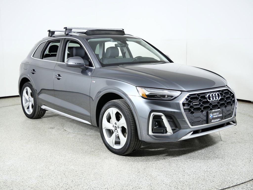 Q5 45 S line Premium quattro, 4D Sport Utility, 2.0L Turbocharged, 7-Speed Automatic S tronic, quattro, Daytona Gray Pearl Effect, Rock Gray w/Leather Seating Surfaces, Audi Active Lane Assist, Audi Virtual Cockpit Plus, Bang & Olufsen Sound System w/3D Sound, Convenience Package, Electronic Stability Control, Exterior Parking Camera Rear, Hands-On Detection Steering Wheel, Leatherette Covered Center Console & Door Armrests, Panoramic Sunroof, Power Adjustable Steering Column, Power Liftgate, Premium Plus Package, Rain sensing wipers, Top View Camera System, Traffic Jam Assist, Trailer Hitch, Wheels: 19" 5-Double-Arm Design Bi-Color Finish.