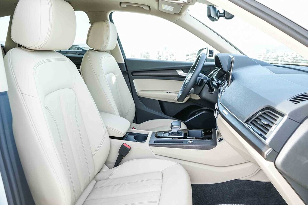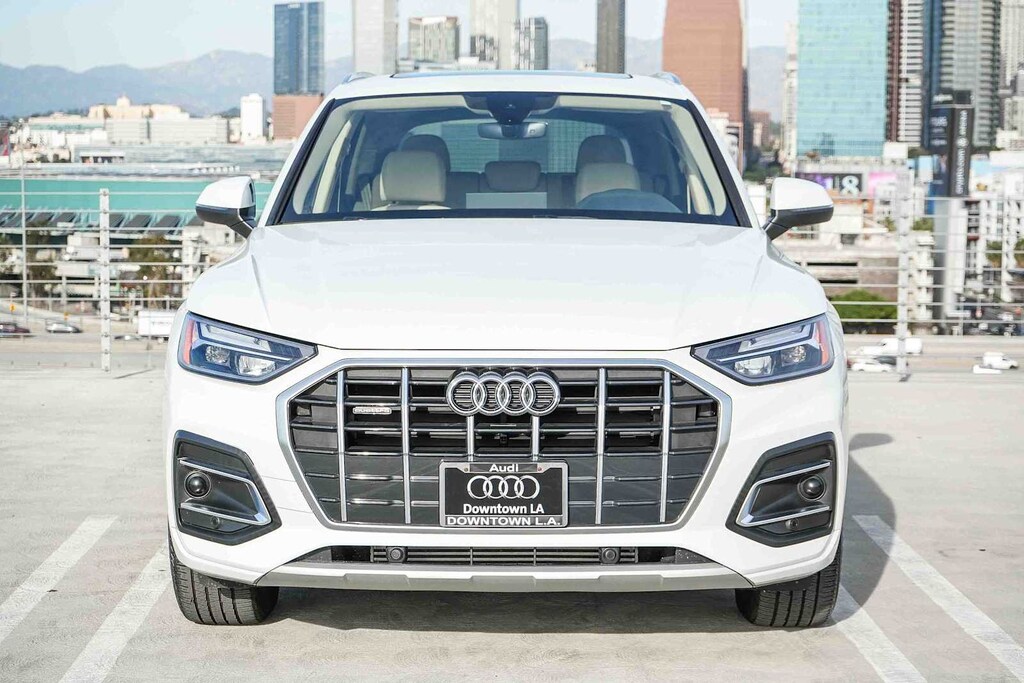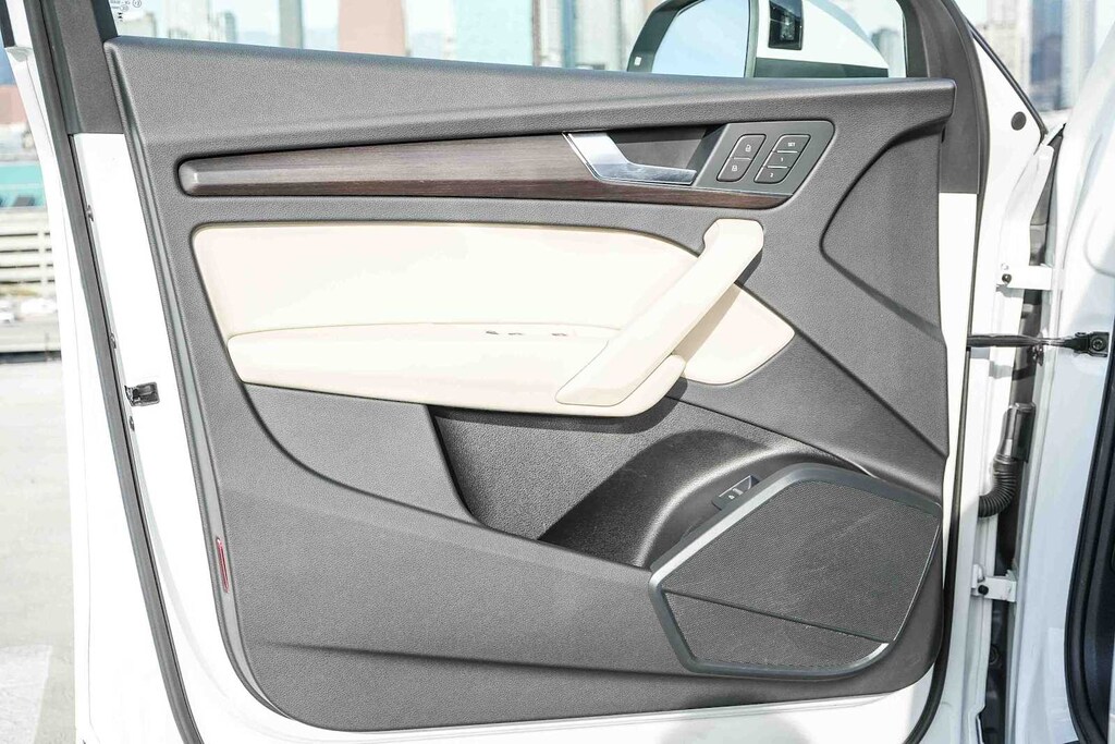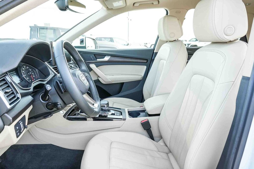 MULTI POINT SAFETY AND MECHANICAL INSPECTION PERFORMED BY CERTIFIED TECHNICIAN, PERFORMED SERVICE, INTERIOR and EXTERIOR DETAILED FOR DELIVERY, 10 Speakers, 4-Wheel Disc Brakes, 5.302 Axle Ratio, ABS brakes, Air Conditioning, Alloy wheels, AM/FM radio, Audi Advanced Key, Audi Beam-Rings, Auto High-beam Headlights, Auto-Dimming Power Folding Exterior Mirrors, Auto-dimming Rear-View mirror, Automatic temperature control, Brake assist, Bumpers: body-color, Compass, Convenience Package, Delay-off headlights, Driver door bin, Driver Seat & Mirror Memory, Driver vanity mirror, Dual front impact airbags, Dual front side impact airbags, Electronic Stability Control, Emergency communication system: Audi connect CARE, Exterior Parking Camera Rear, Four wheel independent suspension, Front anti-roll bar, Front Bucket Seats, Front Center Armrest, Front dual zone A/C, Front fog lights, Front reading lights, Garage door transmitter: HomeLink, Genuine wood console insert, Genuine wood dashboard insert, Genuine wood door panel insert, Gray-Brown Birch Natural Wood Inlays, Heated 8-Way Power Front Bucket Seats, Heated door mirrors, Heated front seats, Heated Steering Wheel, Illuminated entry, Integrated Toll Module Delete (DISC), Leather Seating Surfaces, Leather Shift Knob, Low tire pressure warning, Occupant sensing airbag, Outside temperature display, Overhead airbag, Overhead console, Panic alarm, Panoramic Sunroof, Passenger door bin, Passenger vanity mirror, Power door mirrors, Power driver seat, Power Liftgate, Power passenger seat, Power steering, Power windows, Privacy Trunk Cover, Radio data system, Radio: Audi Sound System, Rain sensing wipers, Rear air conditioning, Rear anti-roll bar, Rear fog lights, Rear reading lights, Rear seat center armrest, Rear window defroster, Rear window wiper, Remote keyless entry, Roof rack, Security system, SiriusXM w/360L, Speed control, Speed-sensing steering, Speed-Sensitive Wipers, Split folding rear seat, Spoiler, Steering wheel mounted audio controls, Tachometer, Telescoping steering wheel, Tilt steering wheel, Traction control, Trip computer, Turn signal indicator mirrors, Variably intermittent wipers, Wheels: 18 5-Arm-Star Design. Glacier White 2023 Audi Q5 40 Premium quattro quattro 7-Speed Automatic S tronic 2.0L Turbocharged
